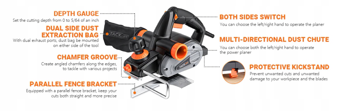 - Профессиональный электрорубанок TACKLIFE EPN02A
