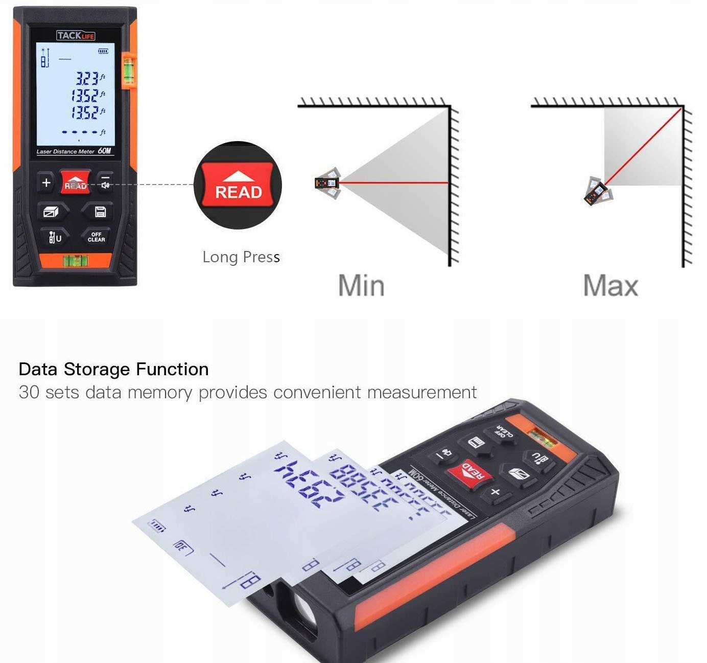 TACKLIFE HD-60 Laser rangefinder, digital distance meter h1> - super accurate and easy to use H2> - an ideal range of distance measurement (from 0.05 to 60 m)- rangefinders> 60m and more can generate measuring errors due to distant calibration h2> surface h2> - measurement of volume h2> - твердое и устойчивое к конструкции ABS- корпус и сопротивление для брызги, пыли или падения