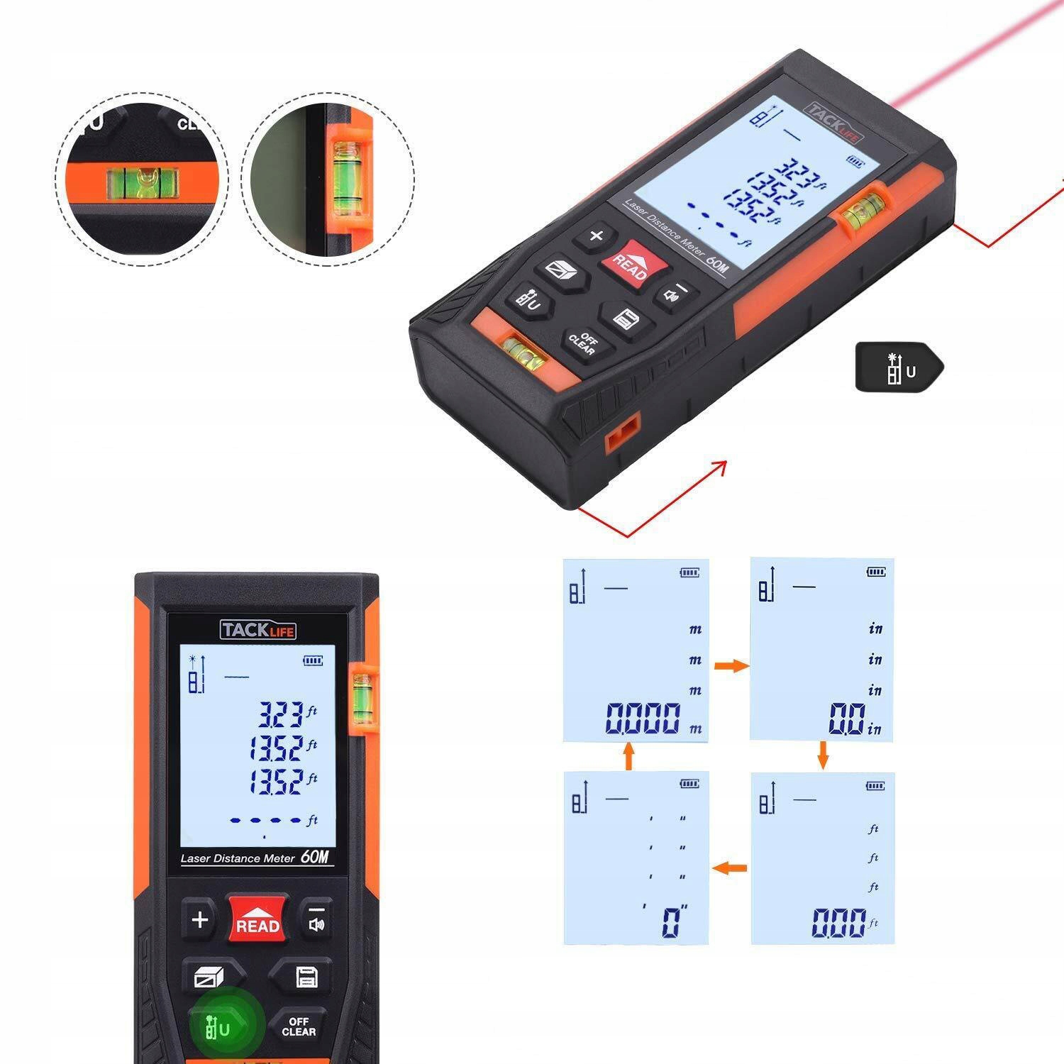 TACKLIFE HD-60 Laser rangefinder, digital distance meter h1> - super accurate and easy to use H2> - an ideal range of distance measurement (from 0.05 to 60 m)- rangefinders> 60m and more can generate measuring errors due to distant calibration h2> surface h2> - measurement of volume h2> - твердое и устойчивое к конструкции ABS- корпус и сопротивление для брызги, пыли или падения
