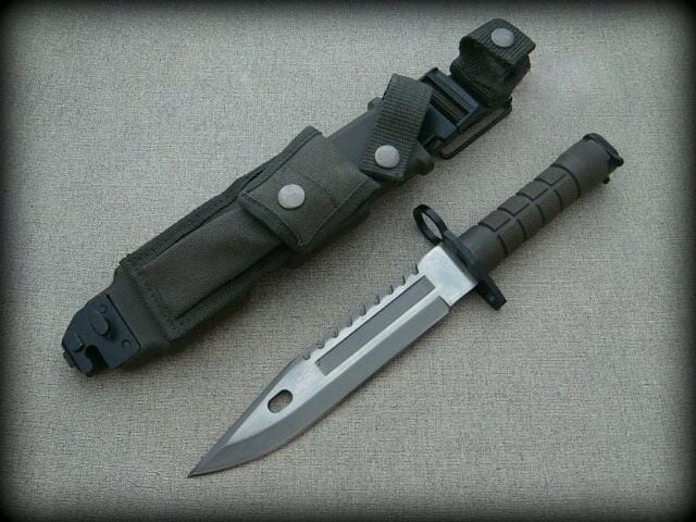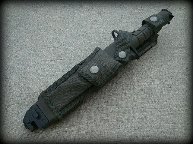 Мощный штык армии США. Нож тяжелый и массивный. Лезвие изготовлено из стали 440С, верхняя часть имеет насечки, что позволяет резать/распиливать древесину. Окорка и т.п. Ручка металлическая, покрытая прочным пластиком оливкового цвета. На рукоятке имеется механизм, позволяющий прикрепить к оружию штык. В комплект входят многофункциональные ножны. Нож идеально подойдет для использования как в туристических и спасательных экспедициях, так и при реконструкции техники американской армии.