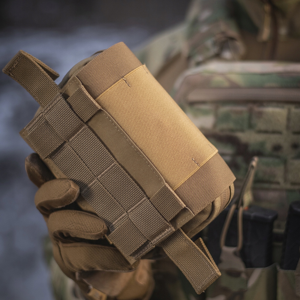 Совместимость с популярной американской системой крепления MOLLE/PALS позволяет быстро прикрепить контейнер к тактическому ремню, жилету, рюкзаку или другим предметам оборудования.