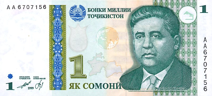 TADŻYKISTAN 1 Somoni 1999 P-14 RZADKA PIERWSZA EMISJA UNC