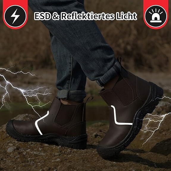➡️Удобная посадка и надежная защита — защитная обувь имеет приятную подкладку, поэтому ее можно носить целый день. Кроме того, они имеют антистатическую и противоскользящую подошву с отличным сцеплением с любым типом поверхности.