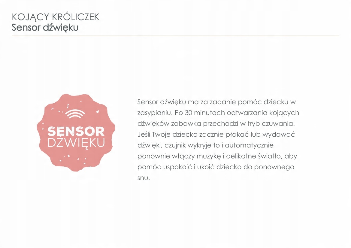 - Улучшает сенсорное развитие: набор «Успокаивающий кролик» предлагает ряд успокаивающих мелодий, таких как струя воды, шум и белые звуки дождя, которые могут помочь стимулировать чувства вашего ребенка и способствовать сенсорному развитию. Мягкий свет, сопровождающий мелодии, также может помочь успокоить вашего ребенка, способствуя его расслаблению.