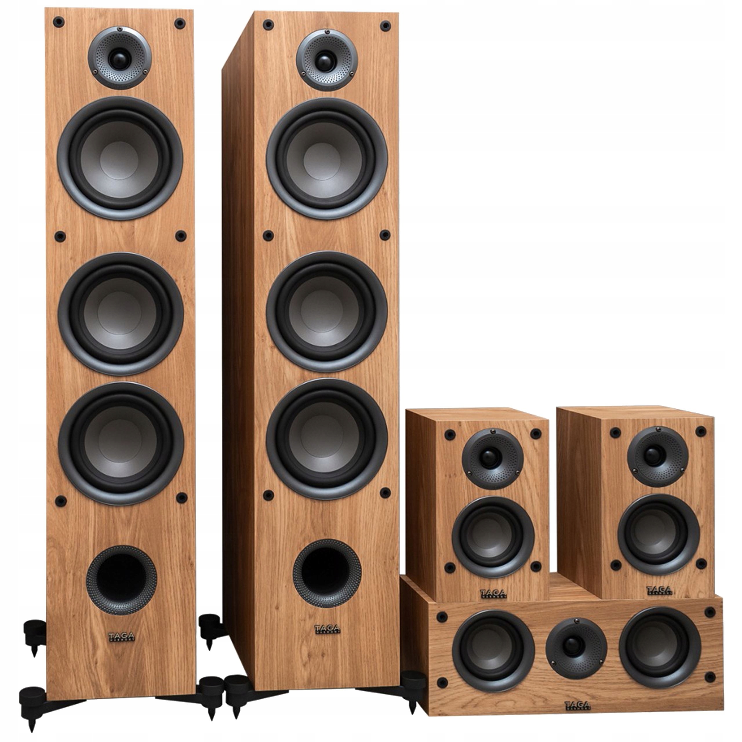 Отличное качество, доступный набор 5.0 динамики для домашнего кинотеатра, состоящие из: 2 напольных динамиков TAV-607F, 2 полочных динамиков TAV-S и одного TAV-C .