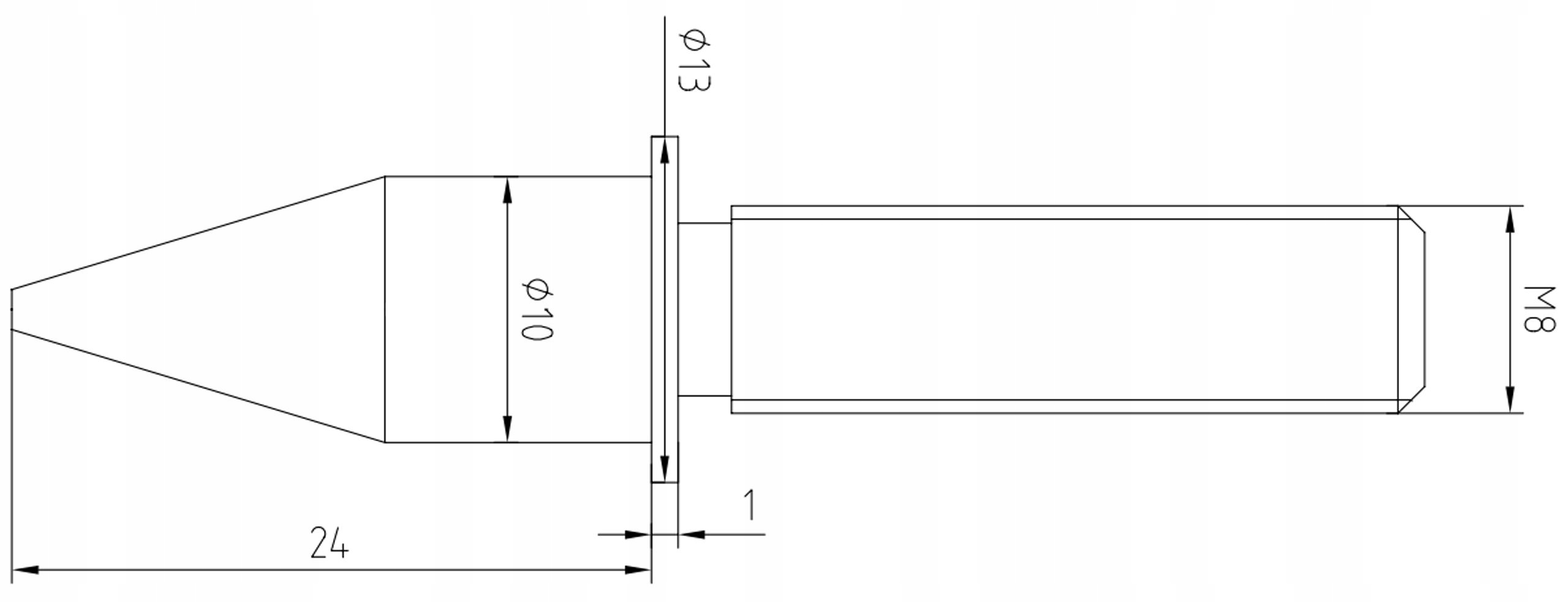 - Размеры штифта: общая высота 59 мм / минимальная высота (полностью ввинченная) 25 мм / резьба M8