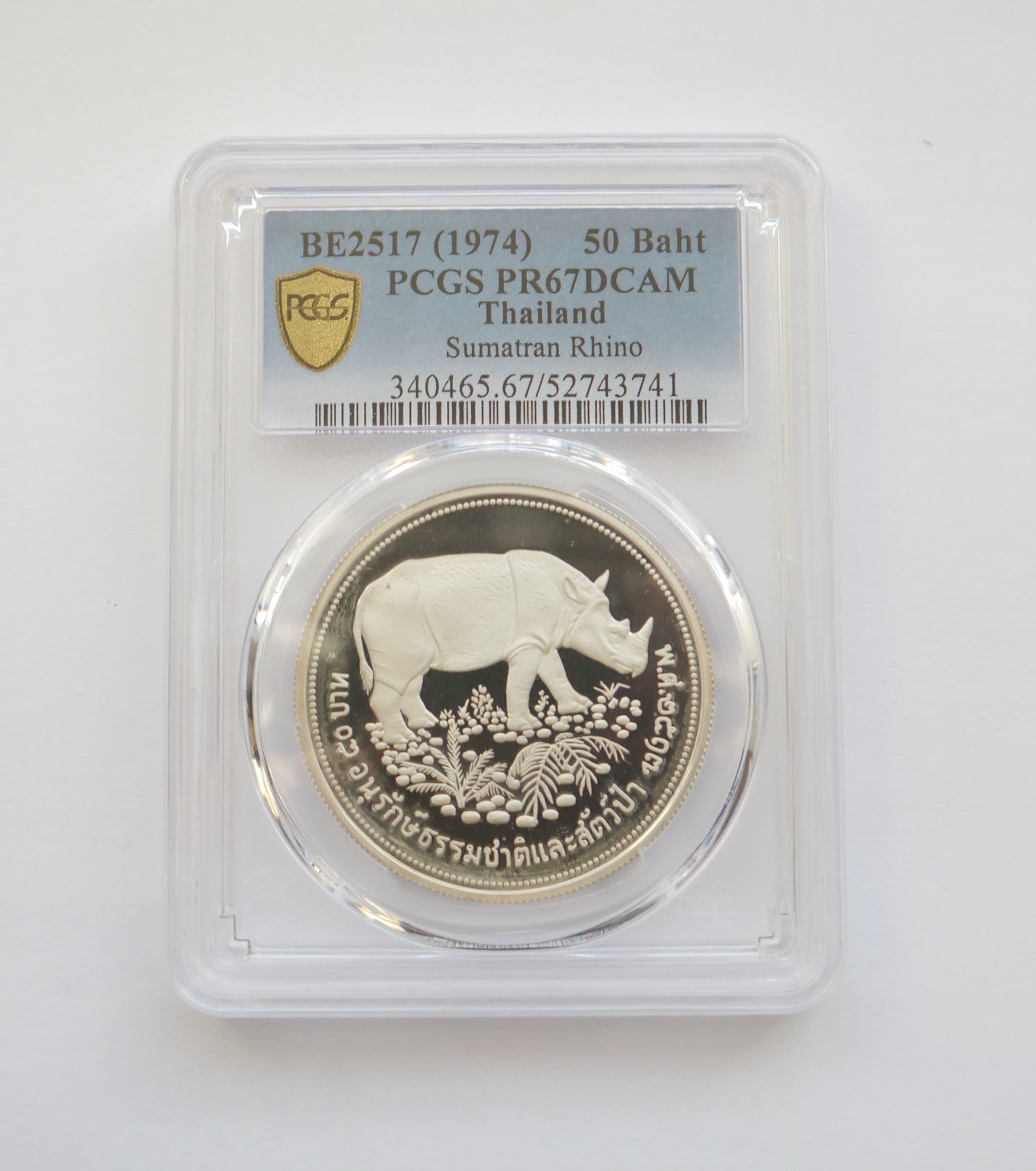 ТАИЛАНД 50 БАТ 1974 ГОДА PROOF RHINOS PCGS PR67DCAM
