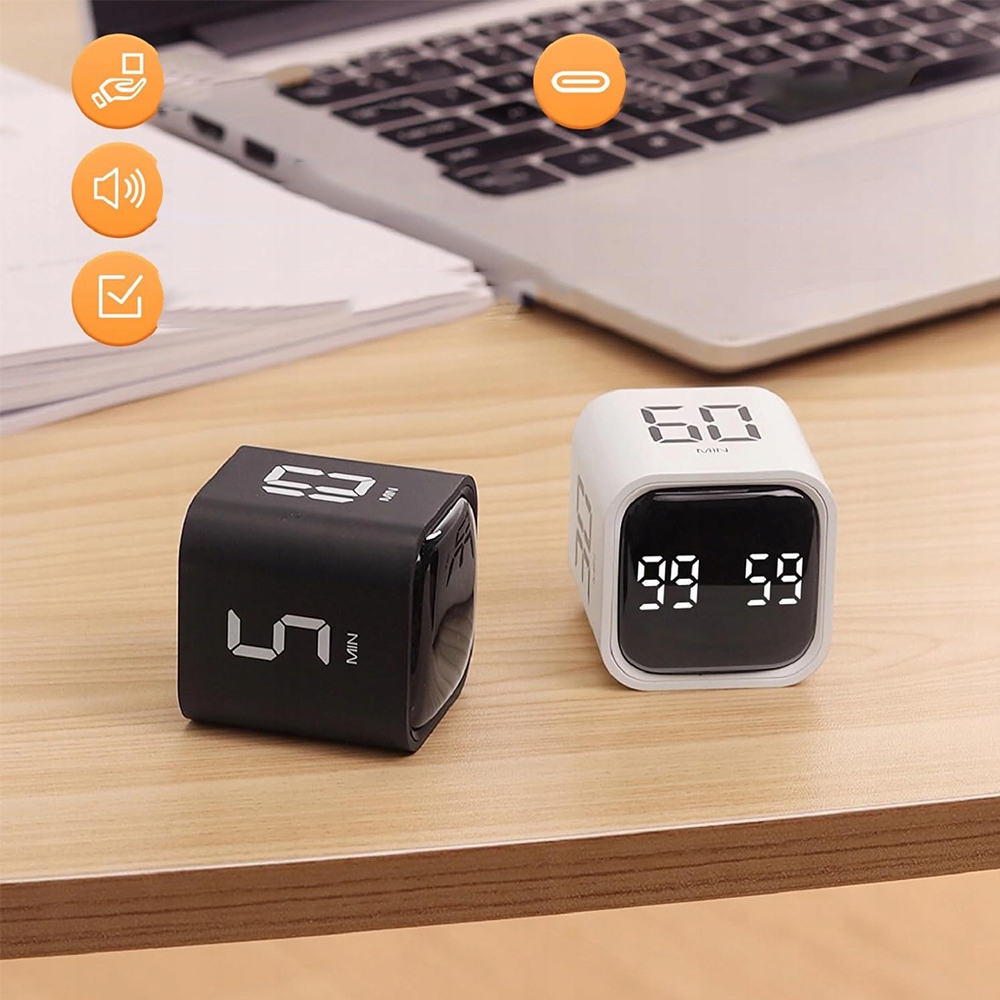 Кубический таймер гравитационный датчик регулируемый звуковой флип Таймер упражнения черный