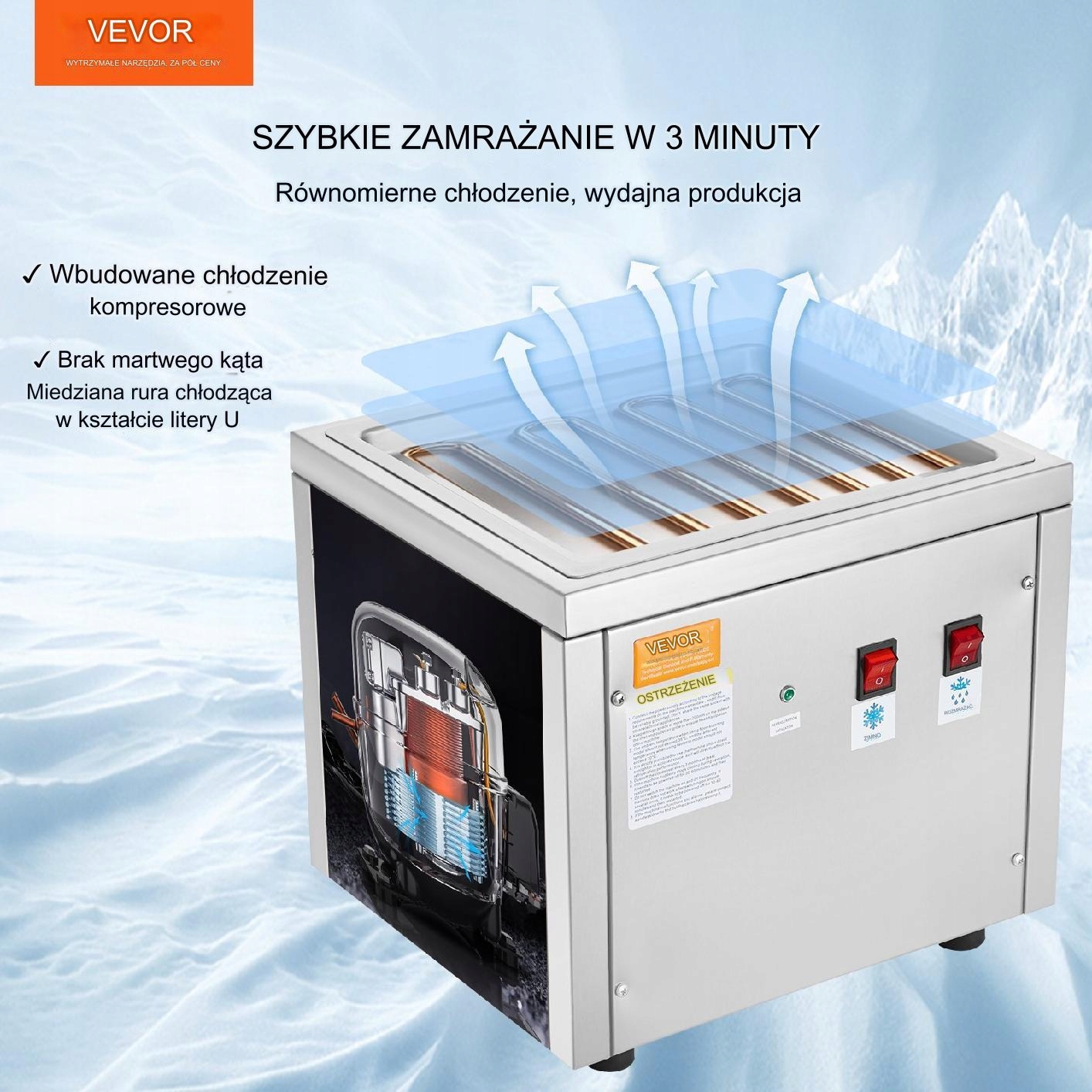 ✅Инновационная технология охлаждения! Аппарат для жареного мороженого с современной компрессорной системой и U-образными бесшовными медными трубками достигает рабочей температуры всего за 3 минуты. Идеально подходит для предприятий общественного питания, кафе-мороженых и фургонов с едой.