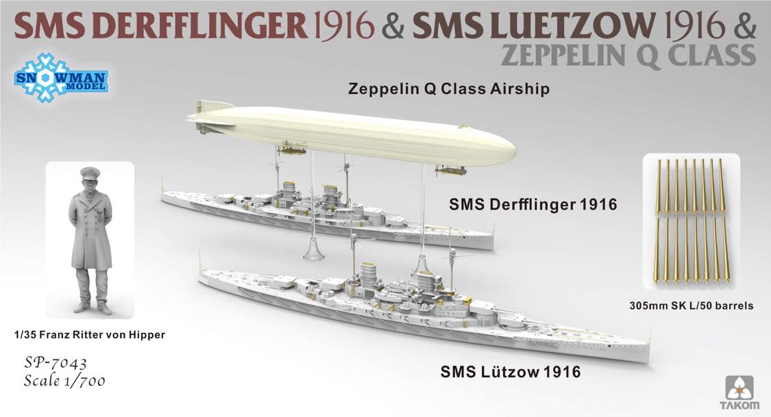 Takom SP-7043 1/700 SMS Derfflinger 1916 & SMS Leutzow 1916 & Zeppelin Q class (Limited Edition)
