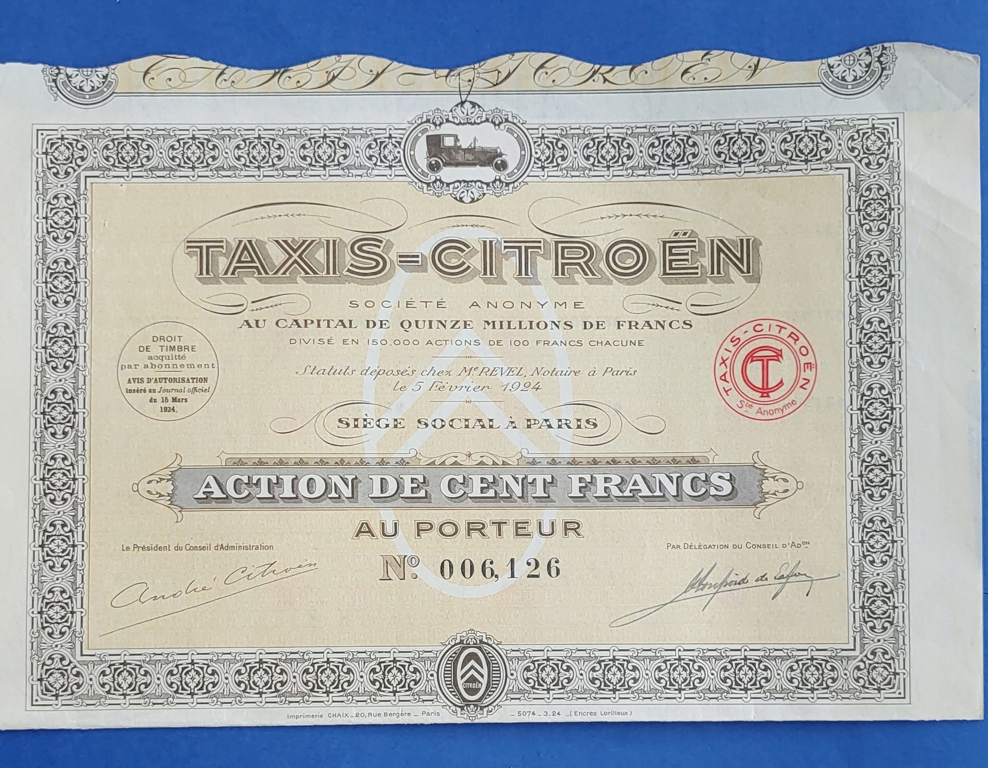 Заказывая «Такси-Ситроен, кампания за 100 франков 1924 года.» данный товар из каталога «цінні папери», вы можете получить дополнительную скидку 4%, если произведете 100% предоплату. Размер скидки вы можете увидеть сразу при оформлении заказа на сайте. Внимание!!! Скидка распространяется только при заказе через сайт.