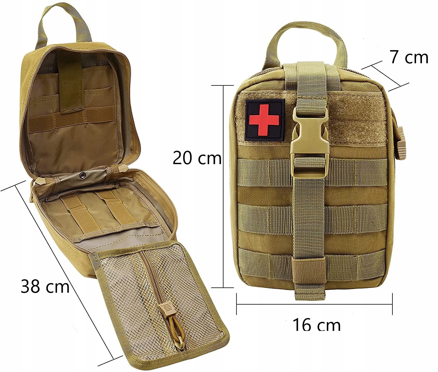 Высококачественная тактическая/военная аптечка первой помощи. Она изготовлена из качественных водонепроницаемых и устойчивых к истиранию материалов, поэтому оборудование внутри всегда останется сухим и безопасным.