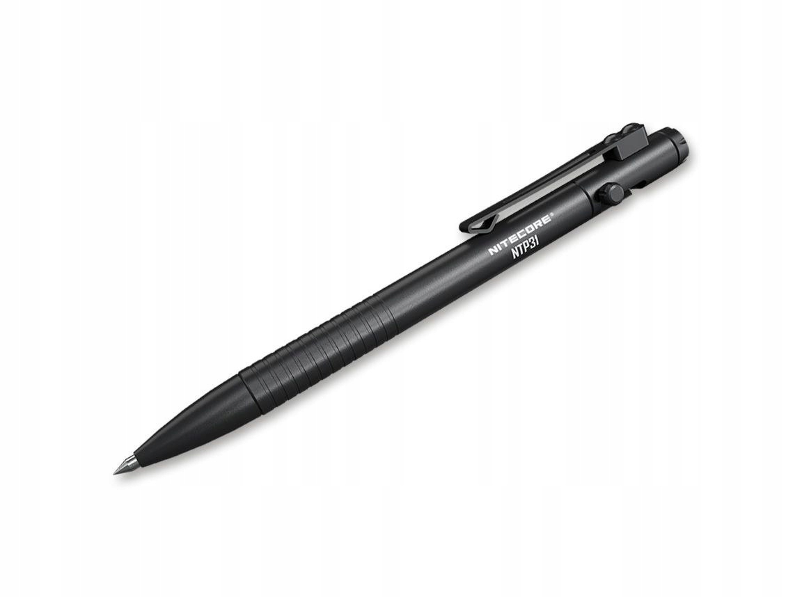 Nitecore NTP31 — простая и элегантная тактическая ручка. В корпусе из анодированного алюминия находится гелевая вставка Schneider. Особенностью NTP31 является выдвижной стеклобой с вольфрамовым наконечником. Запирающий механизм сдвигает вставку в одну сторону, а стеклобой – в другую.