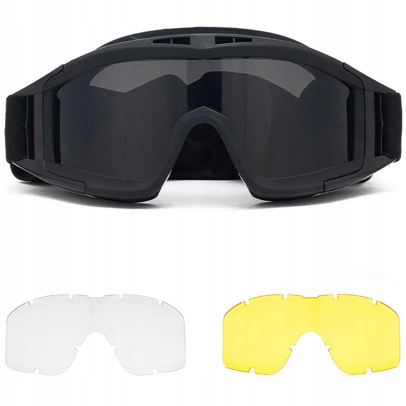 3 СМЕННЫЕ ЛИНЗЫ: Очки имеют три различных типа линз: прозрачные для использования в помещении, дымчато-серые для солнечных дней и желтые для лучшего зрения при слабом освещении. Быстрая замена линз без инструментов. Противозапотевающие очки для страйкбола обеспечивают четкое поле зрения, а различные линзы делают защитные очки идеальными для любого типа освещения в большинстве условий и погоды, а также защищают ваши глаза от холодного ветра.