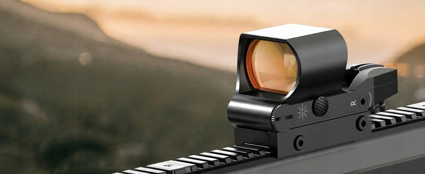 Поверните, чтобы настроить точку удара, нулевое отражающее зрение. (Инструмент в наборе) Каждое регулировка щелчка сдвигает ударный удар на 1 MOA.