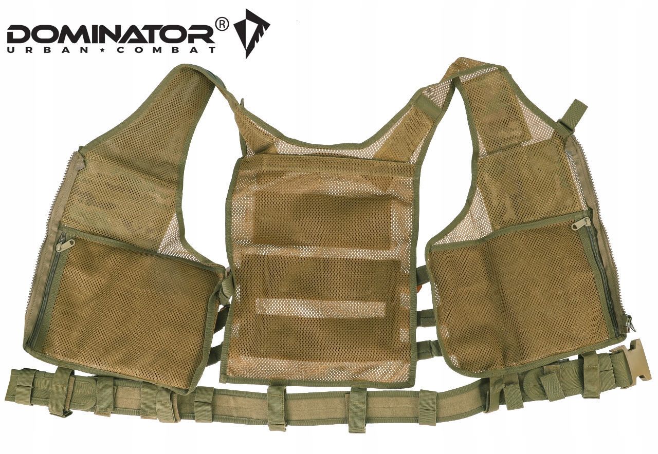 Тактический жилет Huzar, Польский бренд DOMINATOR®. Бренд DOMINATOR® гарантирует очень высокое качество изготовления, основанное на военных спецификациях, надежных материалах и передовых технологиях. Он изготовлен из прочного полиэстера, что делает его устойчивым к разрывам и разрывам. Сетчатая конструкция обеспечивает воздухопроницаемость и комфорт при ношении. Регулировка жилета осуществляется благодаря трем лямкам в боковых частях (регулировка по окружности) и вертикальным широким лямкам на плечах, регулируемым липучками (регулировка по высоте). На спине расположена система MOLLE с четырьмя ремнями, панель-липучкой, позволяющая разместить эмблемы, знаки различия, нашивки боевого духа и названия подразделений.