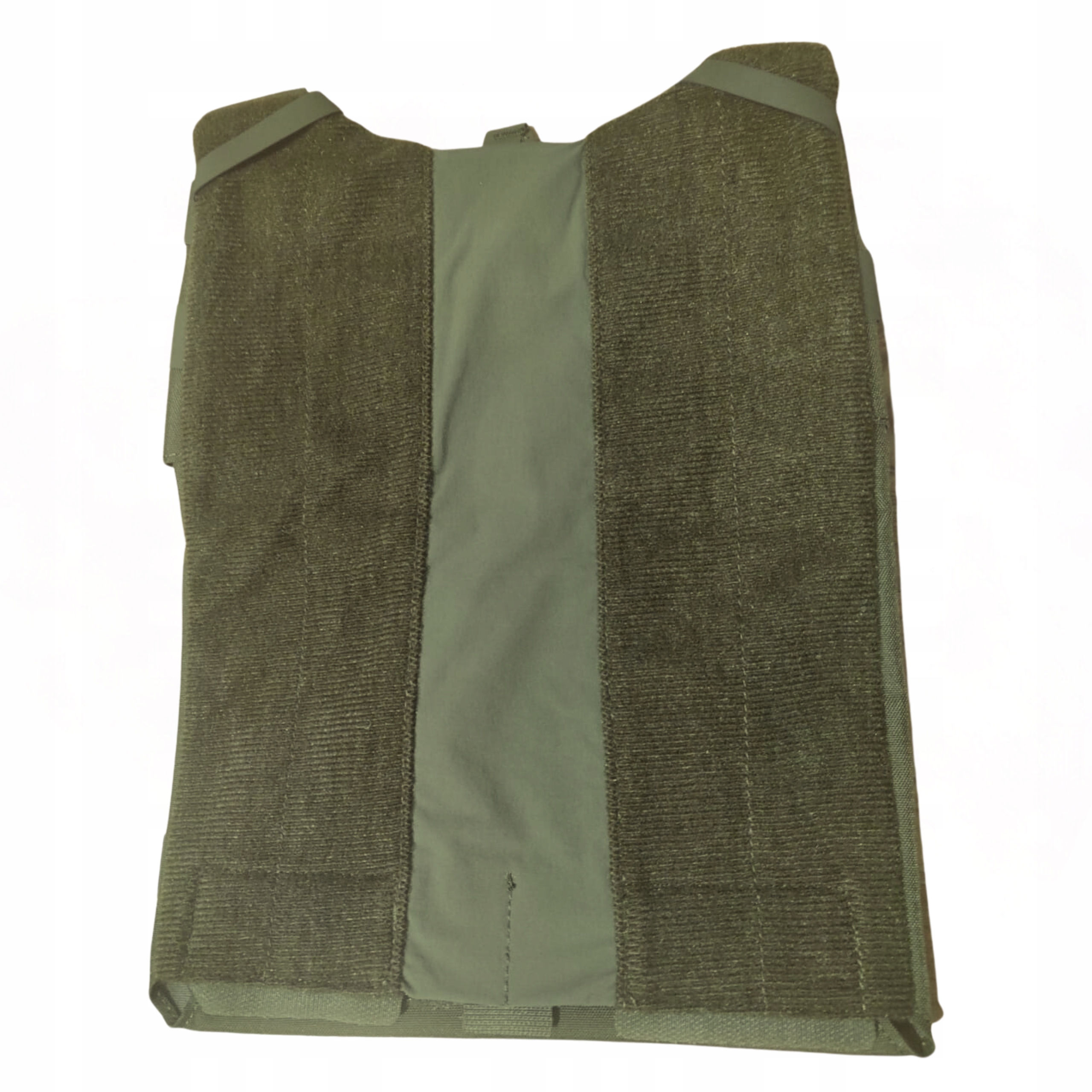 Сзади расположена большая панель на липучке для легкой персонализации с помощью классических MOLLE/PALS застежек. наружу (пять рядов) и усиленную ручку для эвакуации. Ручка пришита к жилету двойными прочными швами, что позволяет ему выдерживать сильные натяжения.