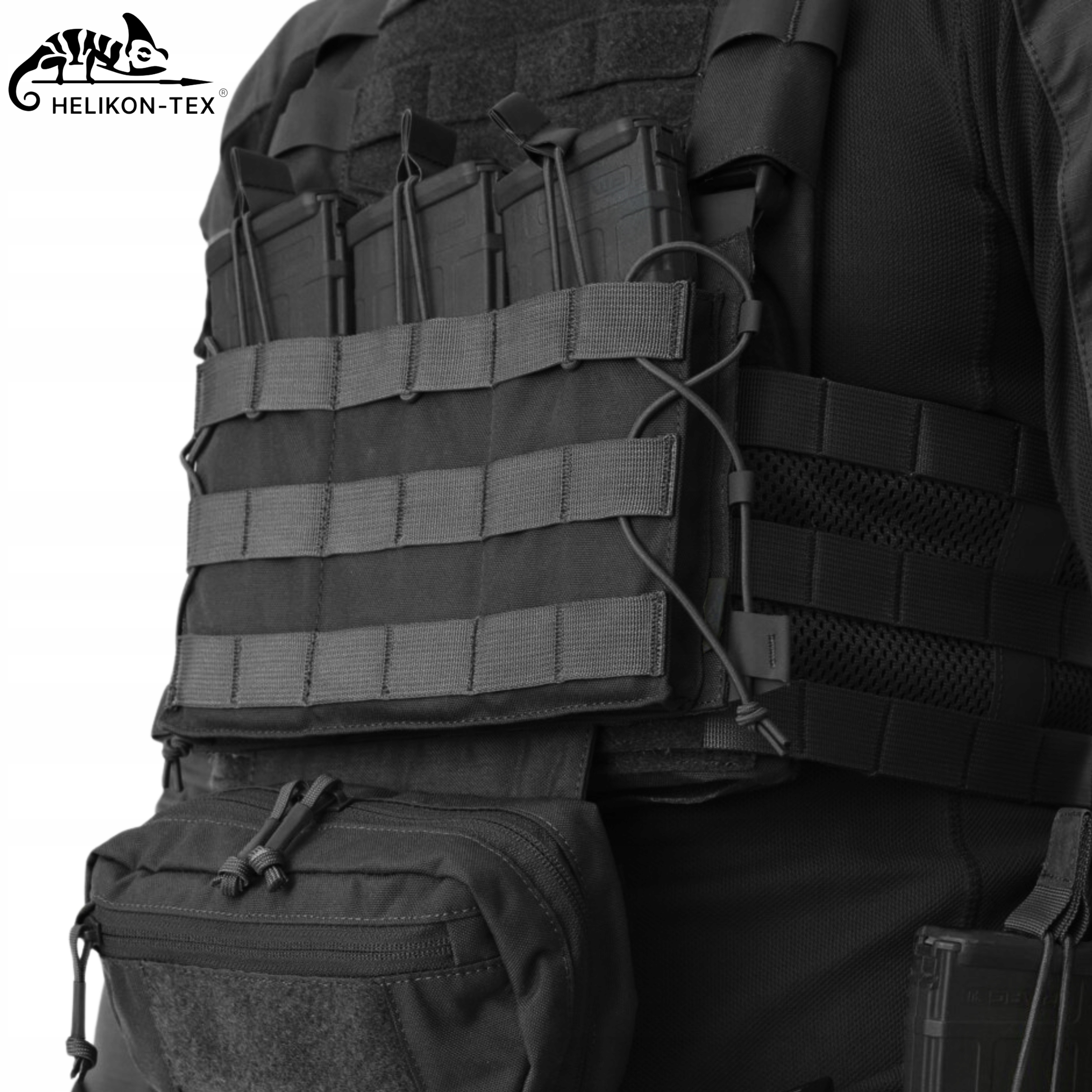 В жилете имеется модуль с универсальным подсумком для трех магазинов к винтовке АК/АР. Съемникис амортизирующимизвеньями предотвращают выскальзывание магазина, обеспечивая при этом легкий доступ к нему. Спереди пришиты лямки системы MOLLE/PALS, по бокам имеются дополнительные петли Shock-Cord для крепления дополнительных аксессуаров.