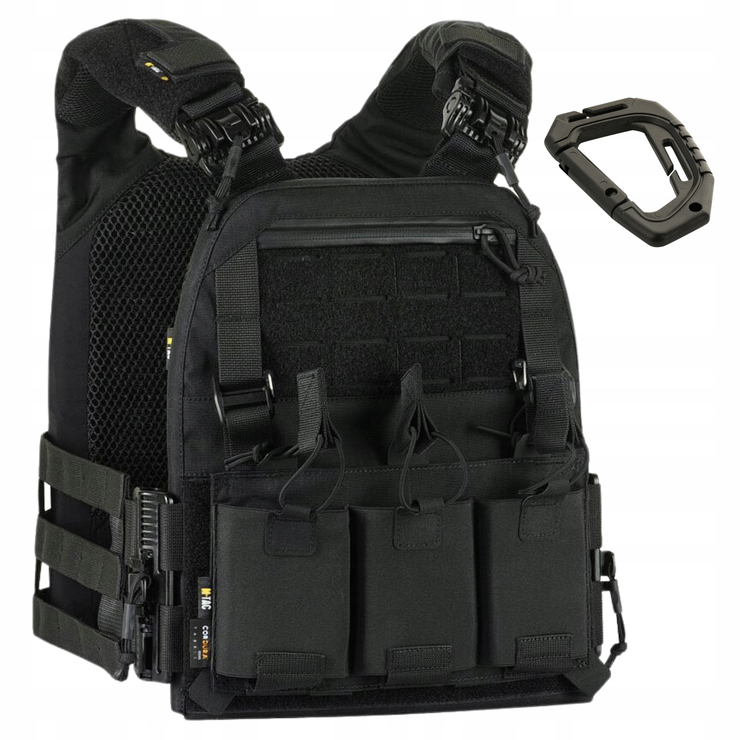 ВОЕННЫЙ ТАКТИЧЕСКИЙ ЖИЛЕТ M-TAC® КИРАСА FAST QRS – ЧЕРНЫЙ – S/M (51381002) + ТАКТИЧЕСКИЙ КАРАБИН – ЧЕРНЫЙ (MTC-TCTCRBNR-BK)
