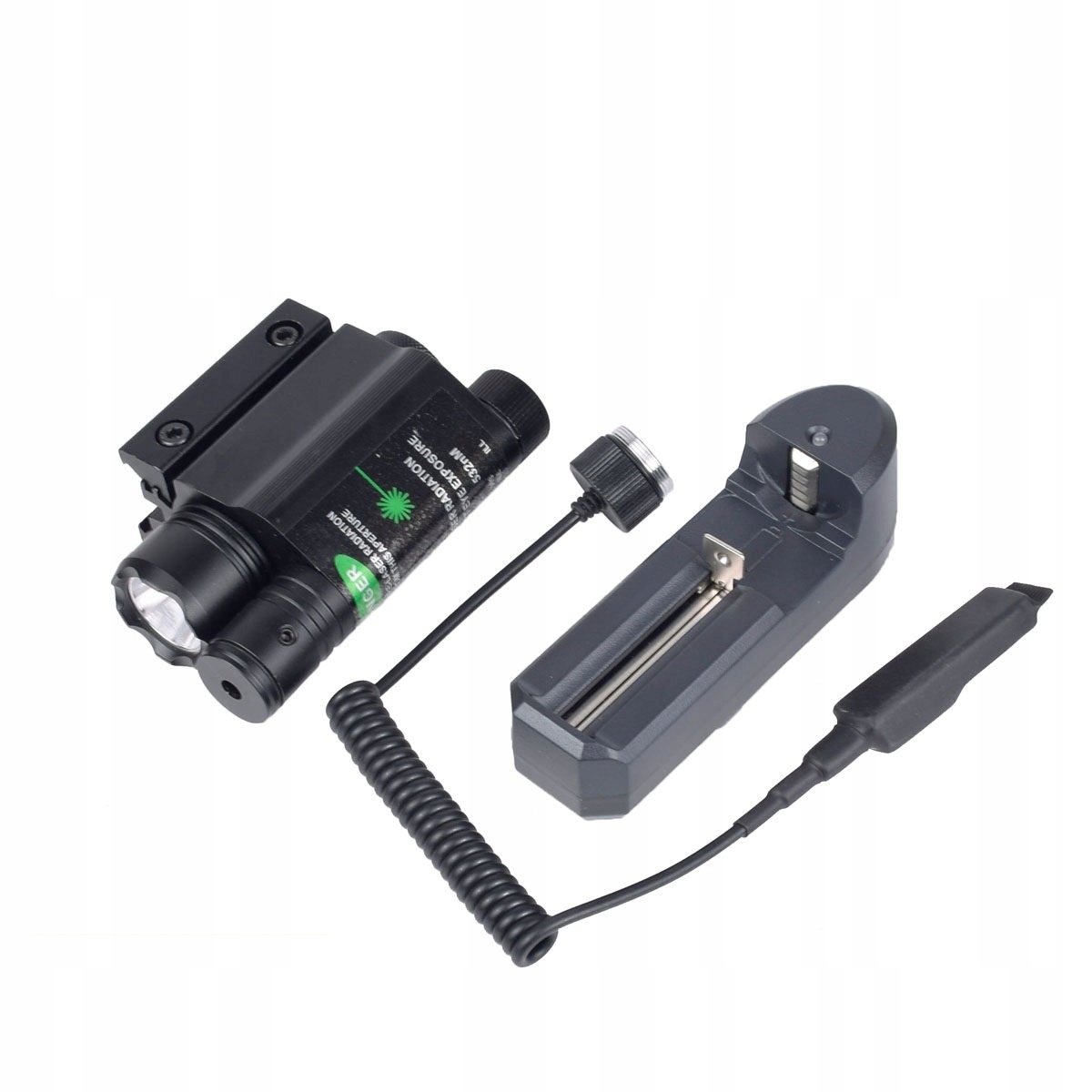 ТАКТИЧЕСКИЙ ФОНАР T6 ДЛЯ СТРЕЙНСОФТА СО СВЕТОДИОДОМ, ЗЕЛЕНЫМ ЛАЗЕРНЫМ ПРИЦЕЛОМ, ЗАДНИМ ПЕРЕКЛЮЧАТЕЛЕМ, ДЛЯ РЕЛЬСОВ 11 ММ И 20 ММ