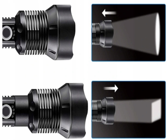 Это изменение фокусного расстояния источника света. Он позволяет регулировать мощность от мощного узкого луча света с дальностью действия до 1500 м до рассеянного широкоугольного луча света. Универсальность фонаря делает его идеальным для использования на любой местности.