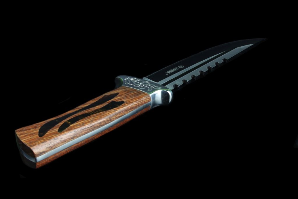 Элегантный нож из высококачественной стали 440. Черный клинок. Рукоять идеально профилирована, благодаря чему нож хорошо лежит в руке. В комплект ножа входит чехол, который можно носить на ремне.