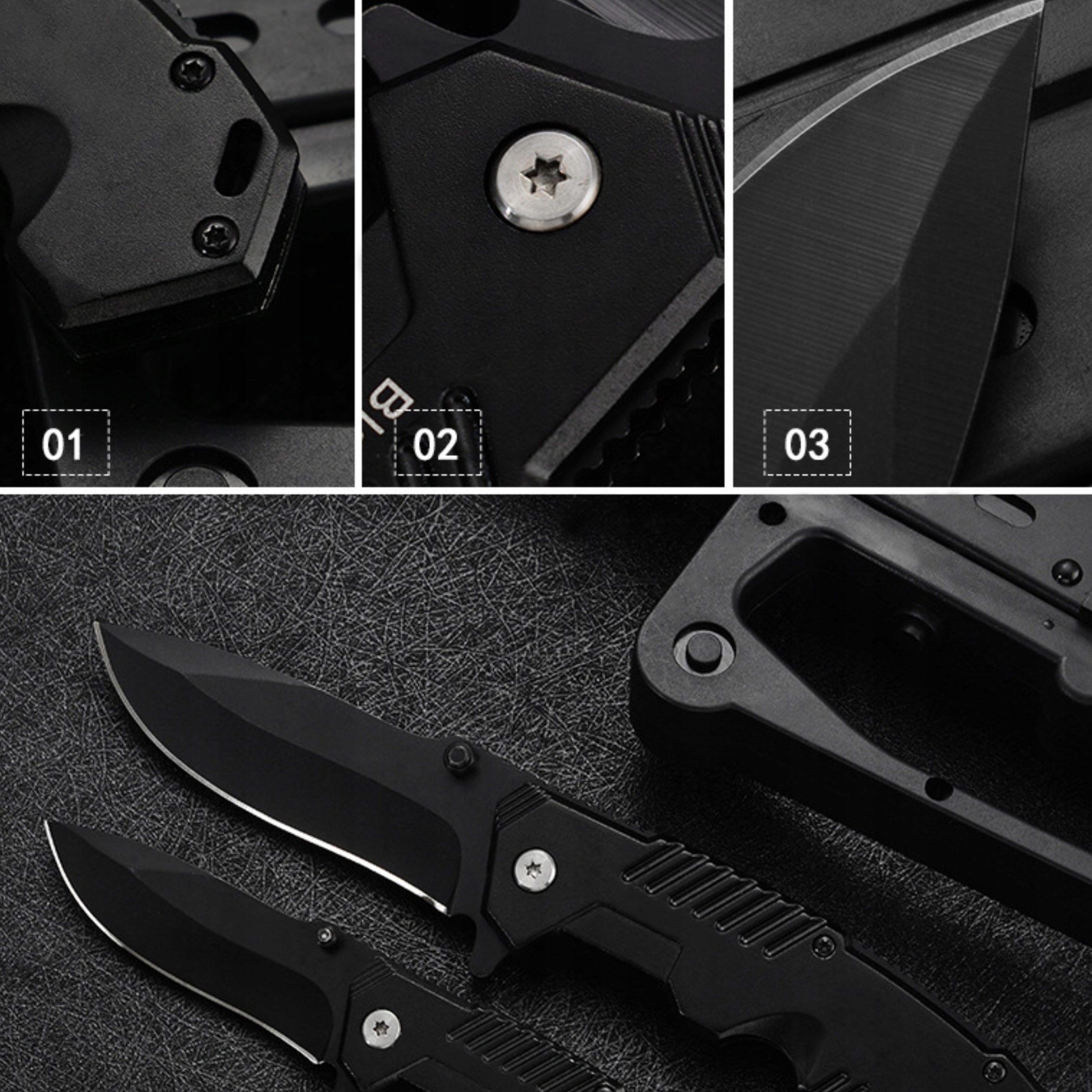 - Наш продукт изготовлен из высококачественной нержавеющей стали 304L, устойчивой к ржавчине, коррозии и износу. Он также имеет титановое покрытие, придающее блеск и защиту. Лезвие складного ножа имеет длину 8,5 см и толщину 2,8 мм, что обеспечивает длительную остроту и долговечность.
