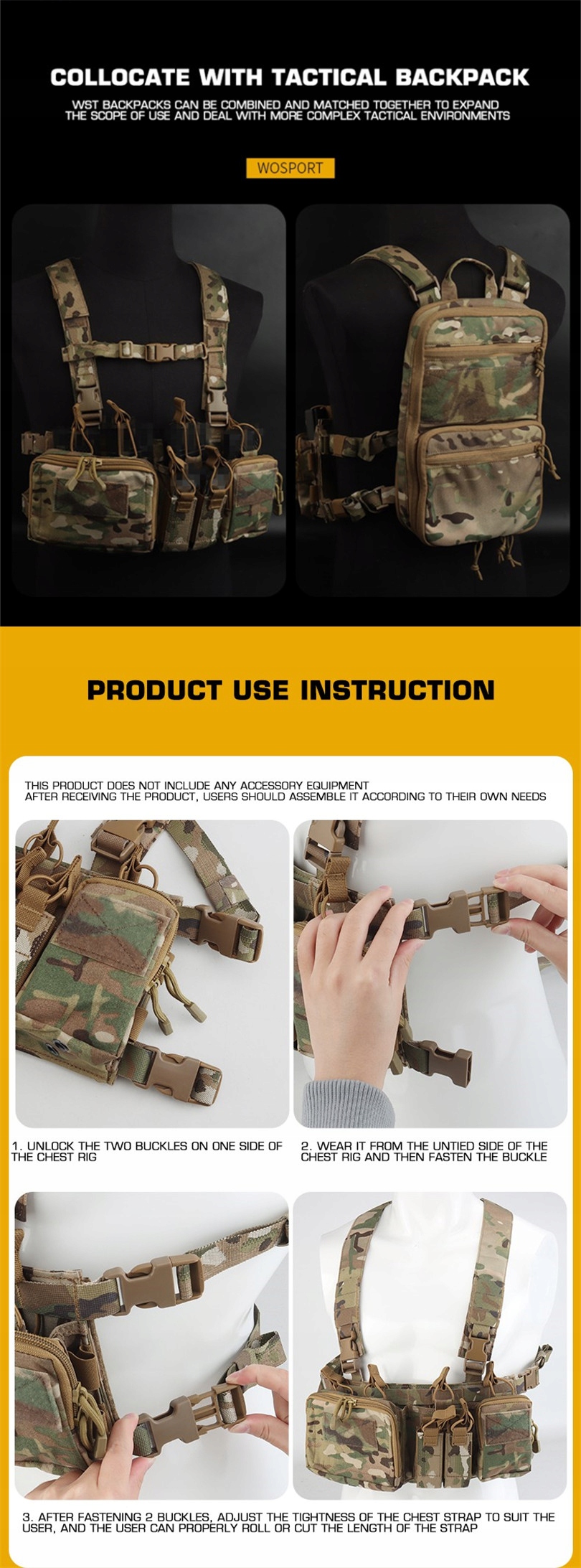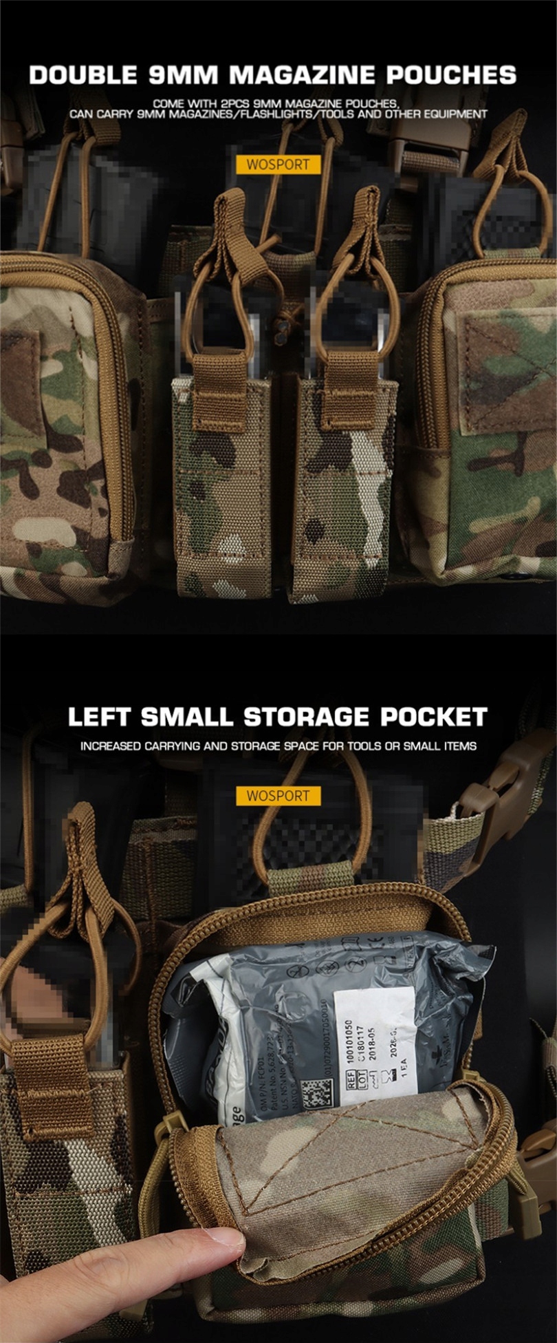 3. Оснащен двумя 9 -мм функциональными мешками, передавая 9 мм/фонарик/инструменты и другое оборудование.