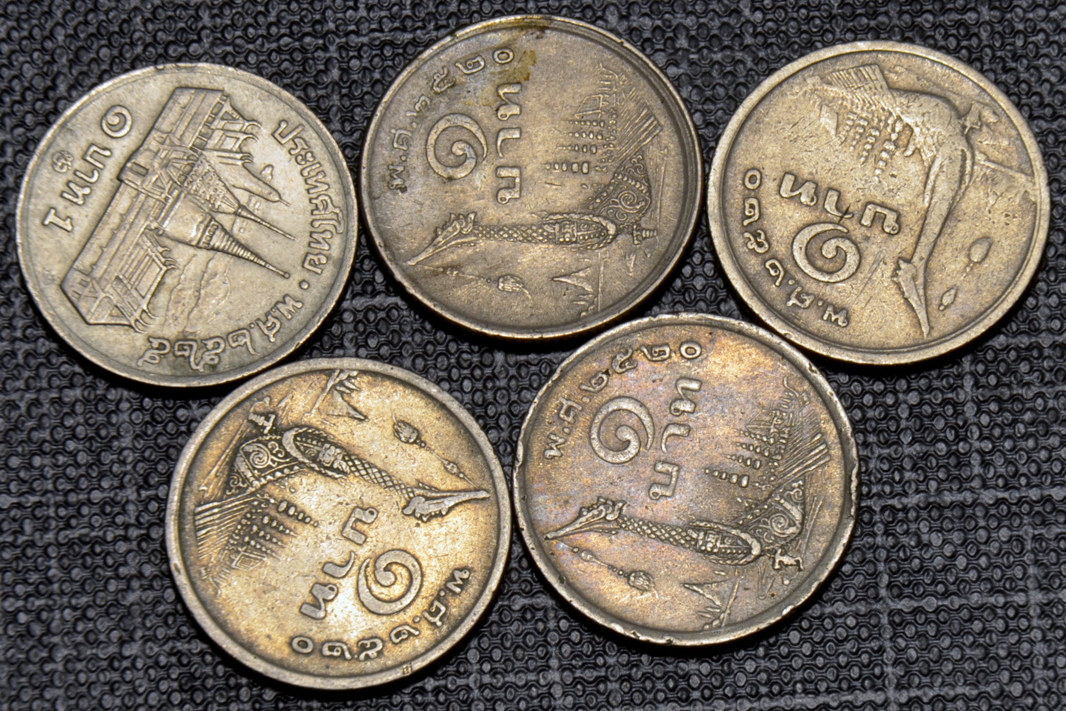 ТАЇЛАНД - 1 БАТ 1977,1982 - 5 шт