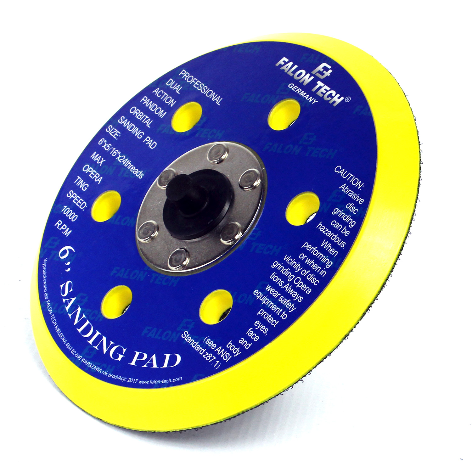 Диск на липучке, подготовленный для крепления наждачных дисков с системой перфорации 6+1, полировальных подушечек и т. д.