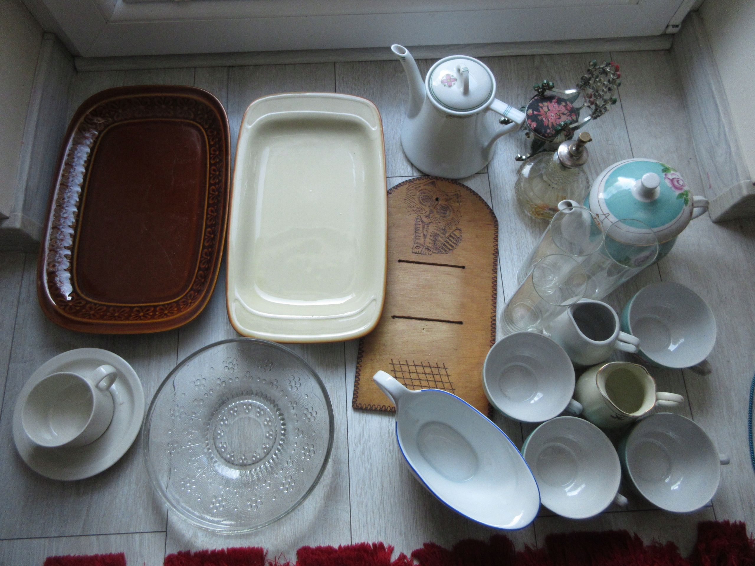 У меня есть набор посуды, который виден на фотографиях. Большинство подписано внизу. Несмотря на возраст, посуда очень хорошо сохранилась, некоторые повреждены, см. фото. Продаю в основном стаканы и эту тарелку, вероятно, Зомбковицкого стекольного завода, остальное - халява.