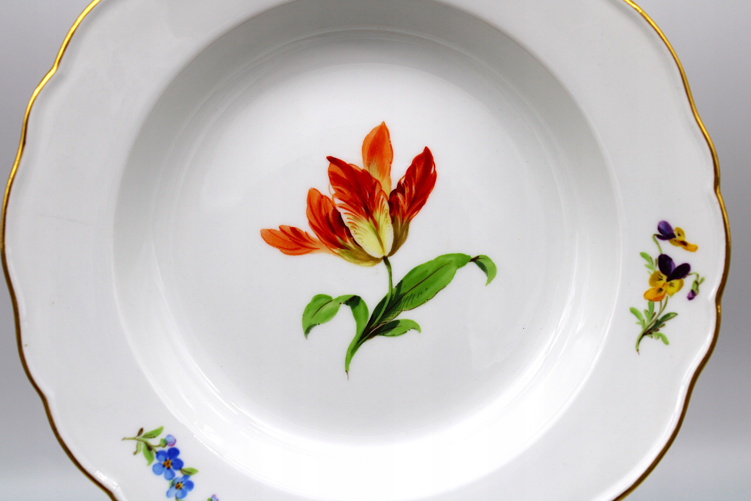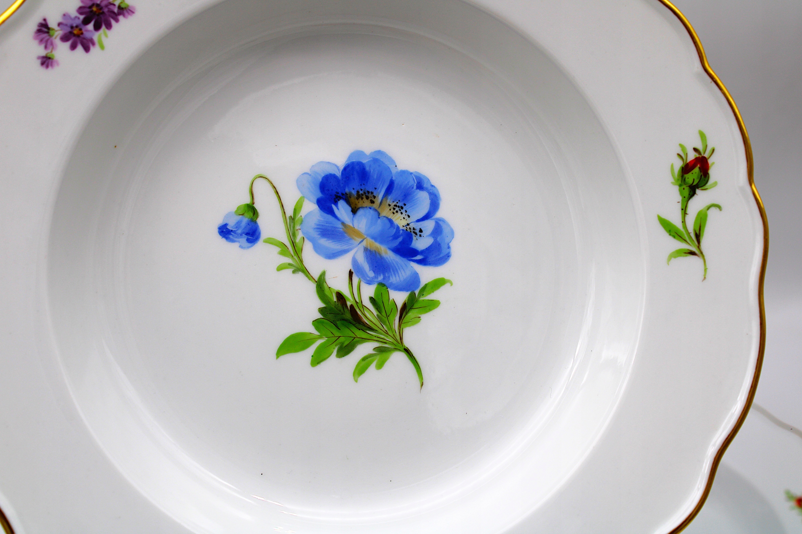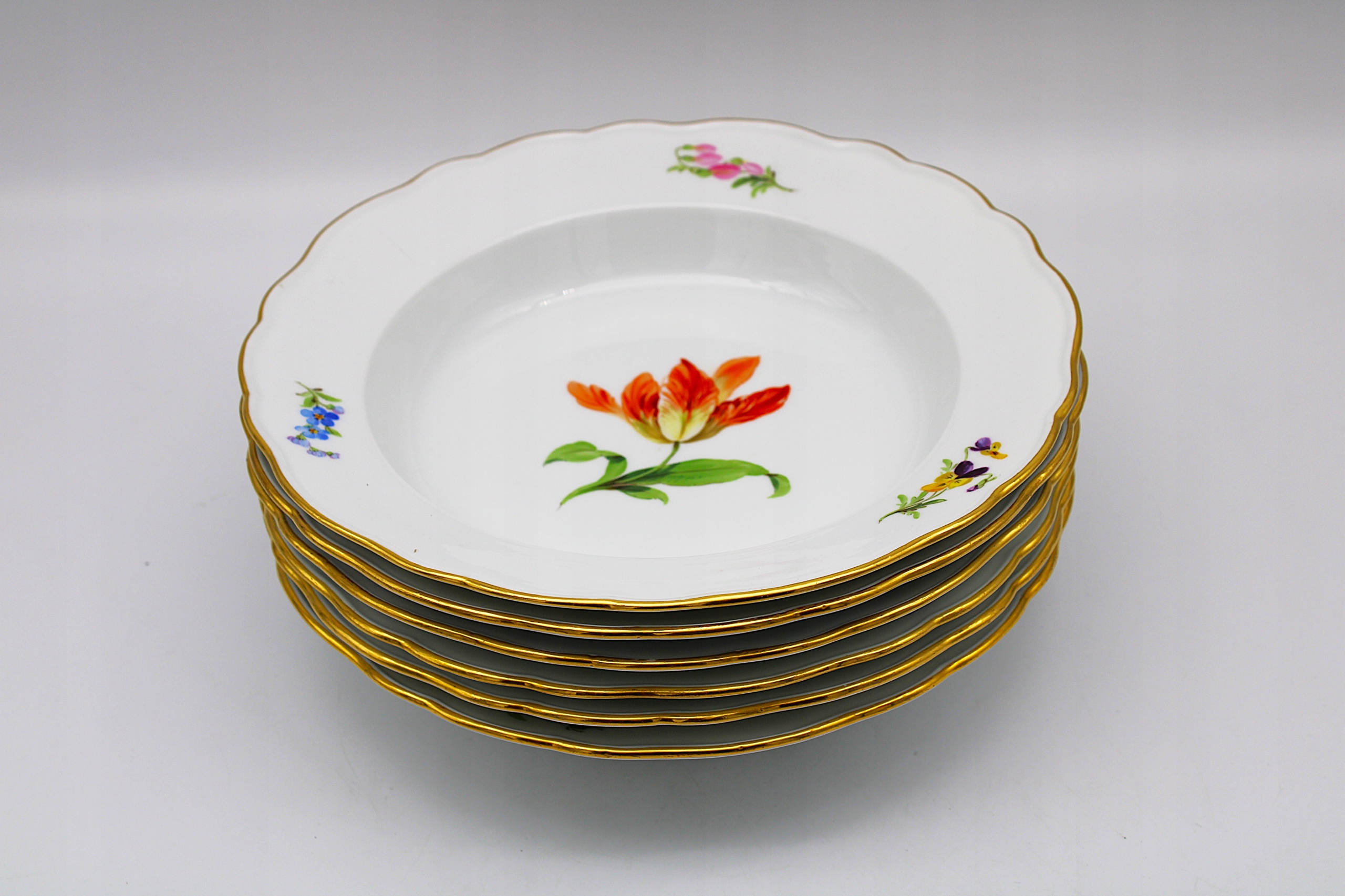 TALERZE GŁĘBOKIE OBIADOWE 6 SZTUK PORCELANA MIŚNIA - SAKSONIA XIX-w