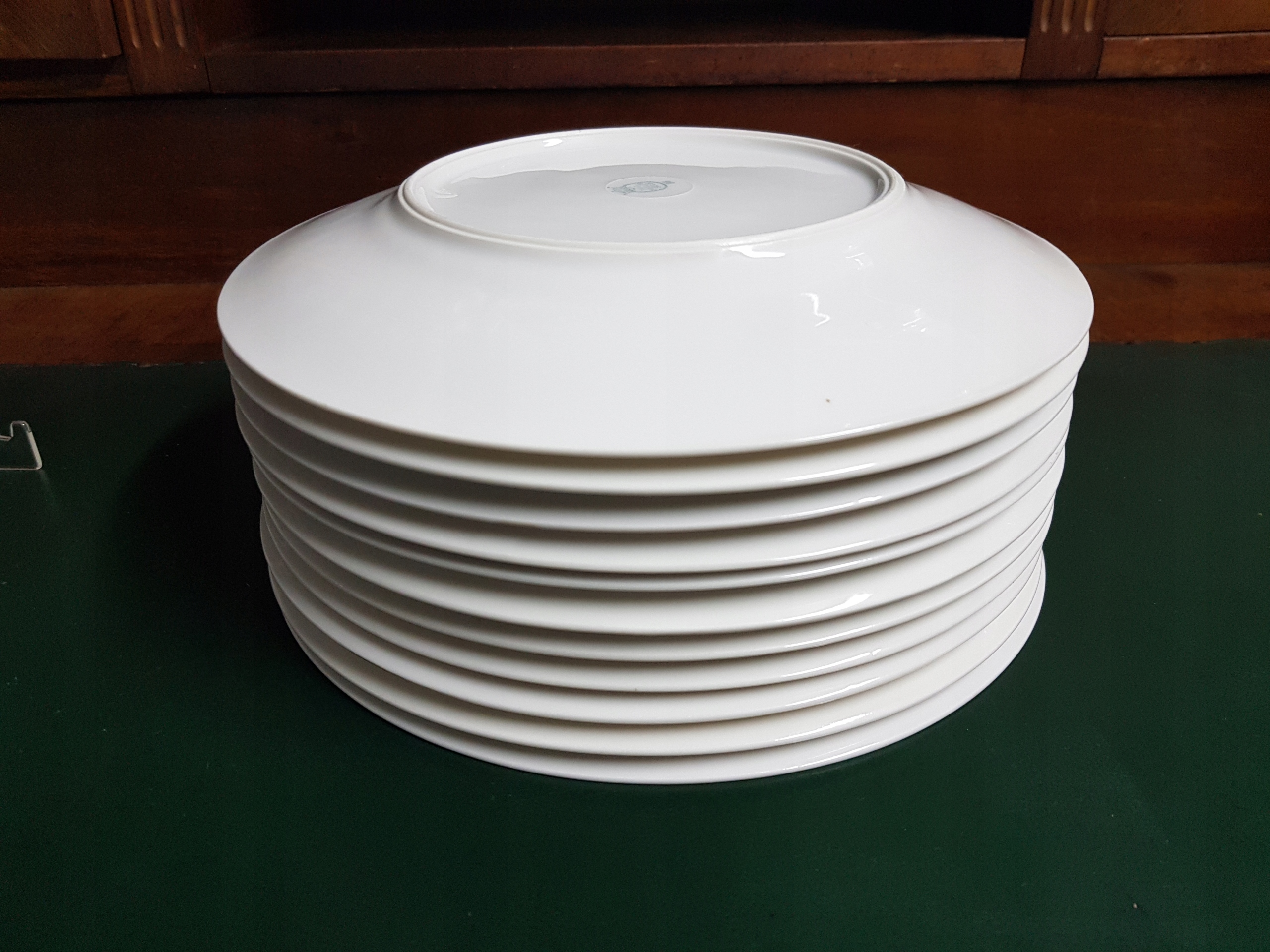 Предмет аукциона — 11 обеденных тарелок Paul Muller Selb. Белый фарфор. Тарелки без царапин и ножевых порезов.