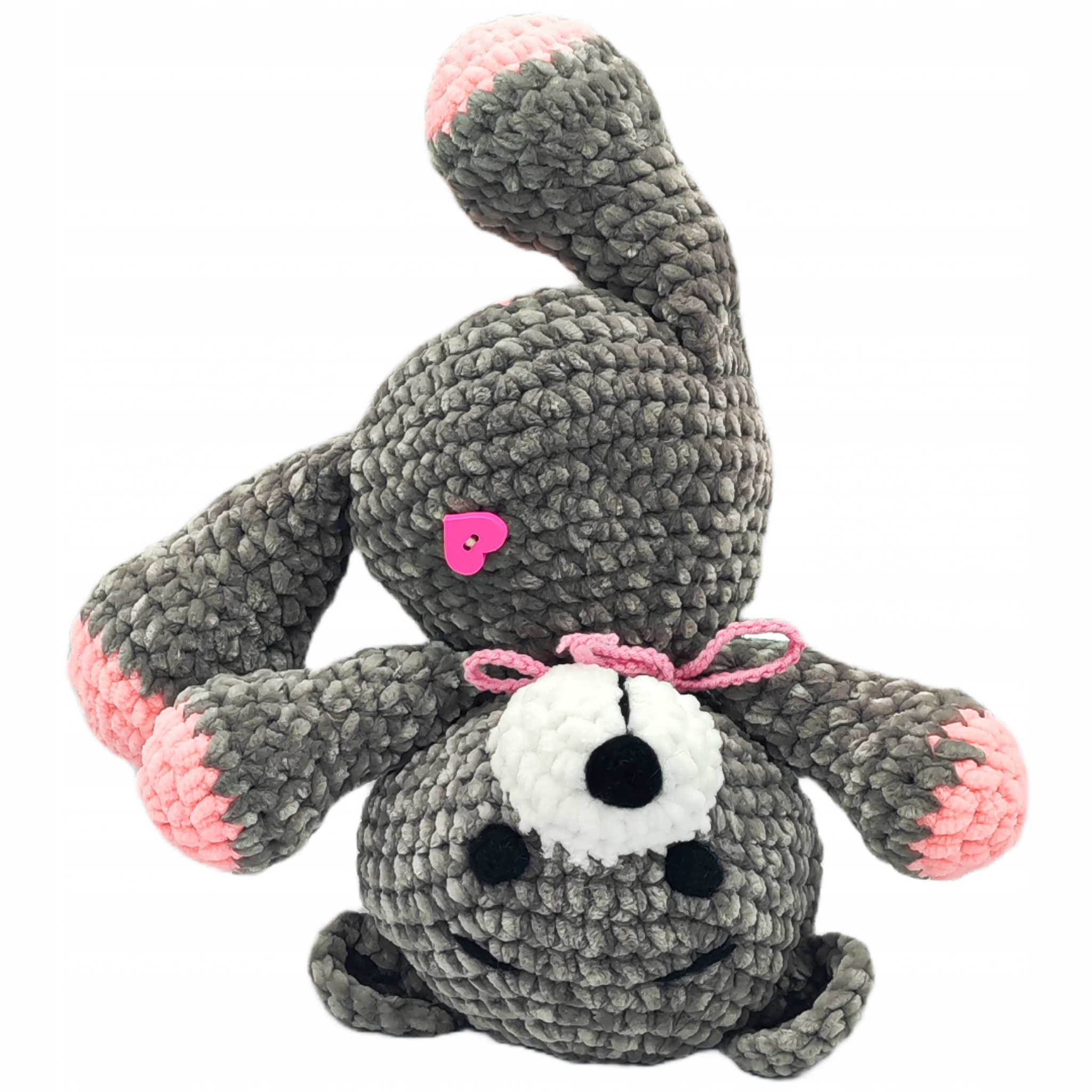 Плюш выполнен в нейтральном сером цвете, со вставками пудрово-розового цвета, поэтому он подойдет как игрушка для детей всех возрастов и как украшение для многих комнат. Мы можем подарить его нашим детям на день рождения или Рождество, и он станет прекрасным подарком для будущих и молодых мам.