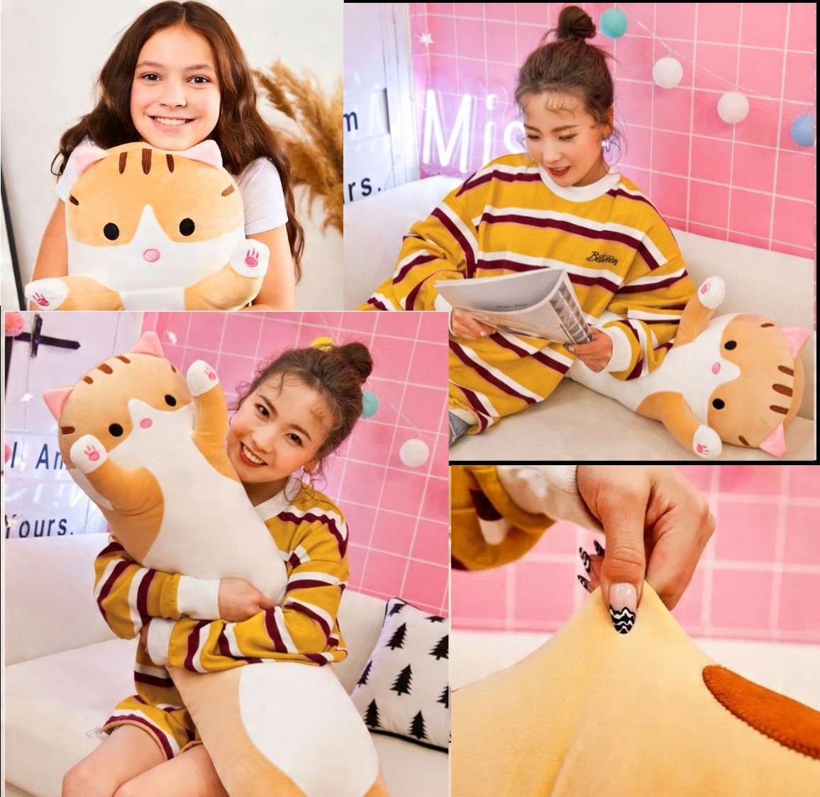 ПЛЮШЕВАЯ ИГРУШКА-МАСКОТ ПОДУШКА ДЛЯ ОБНИМАНИЙ ДЛИННЫЙ КОШКА ОРАНЖЕВЫЙ 110см