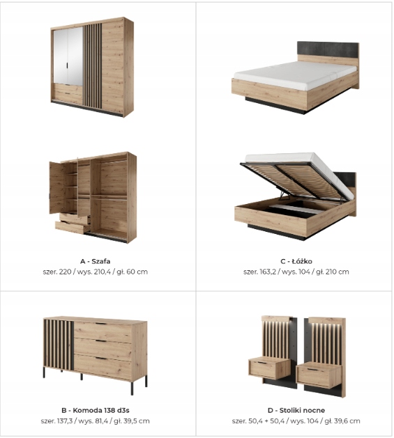 Комплект TALLY представляет собой идеальное сочетание приглушенных землистых цветов — ремесленного дуба и антрацита, — которое придает каждой спальне уютную и естественную атмосферу. Ламели, использованные на фасадах шкафов и комодов, придают коллекции современность и подчеркивают характер форм. Чрезвычайно функциональная коллекция. Вместительный шкаф с большим зеркалом и ящиками прекрасно сочетается с вместительным комодом.