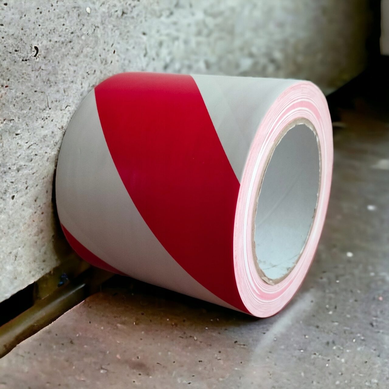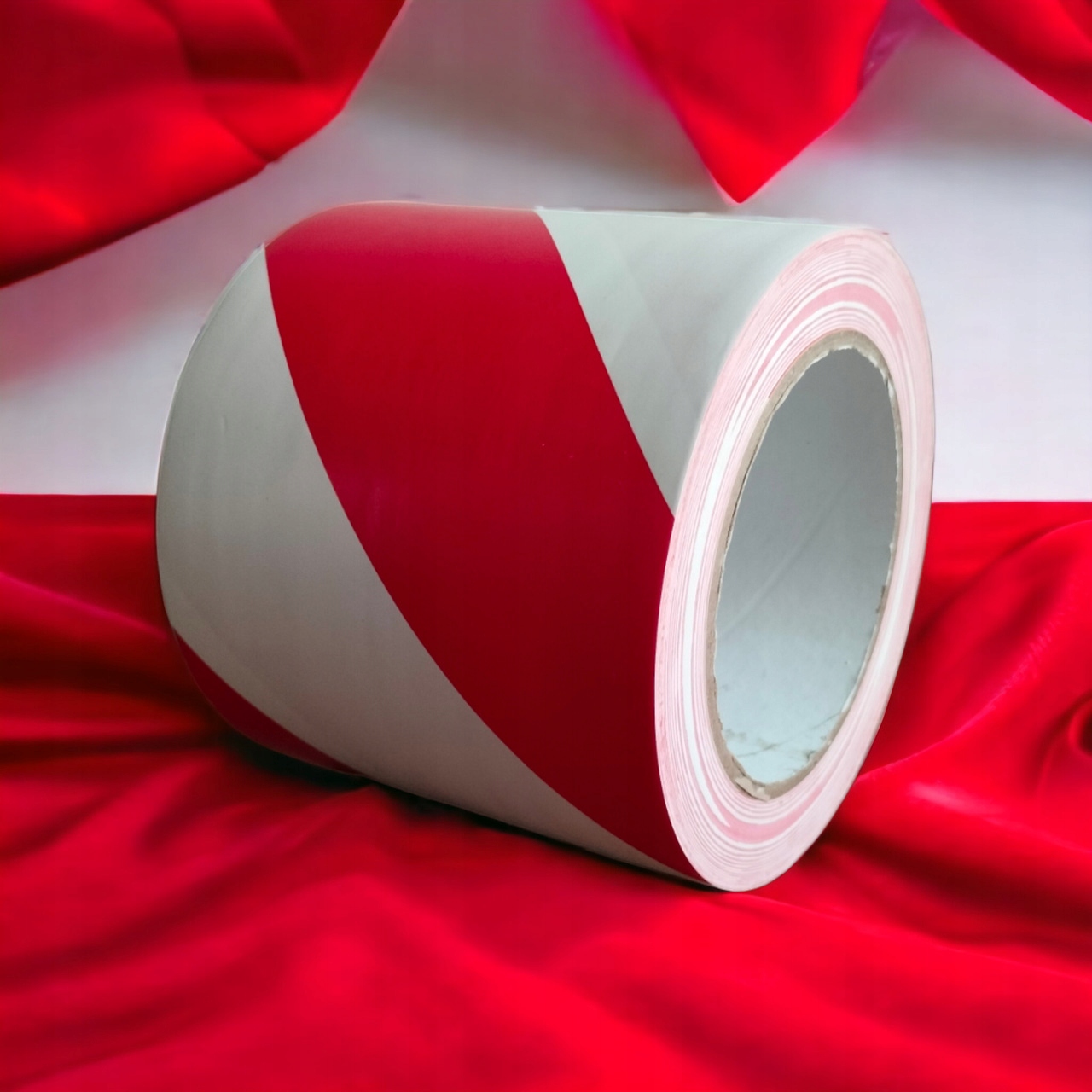 Taśma ostrzegawcza samoprzylepna biało czerwona 100 mm x 33 m OZNACZENIOWA
