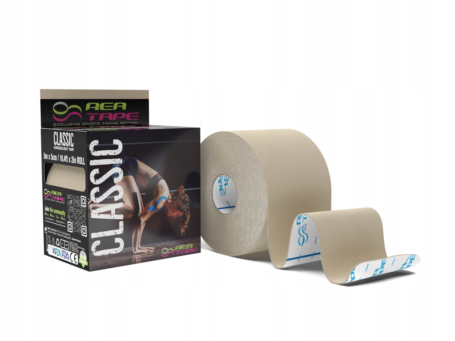 Taśma tejp plaster do kinesiology taping Rea Tape classic 5 cm x 5 m beż