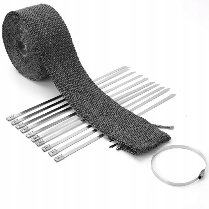 Taśma termoizolacyjna kolektor wydech CZARNA 10 m + 15OPASKI