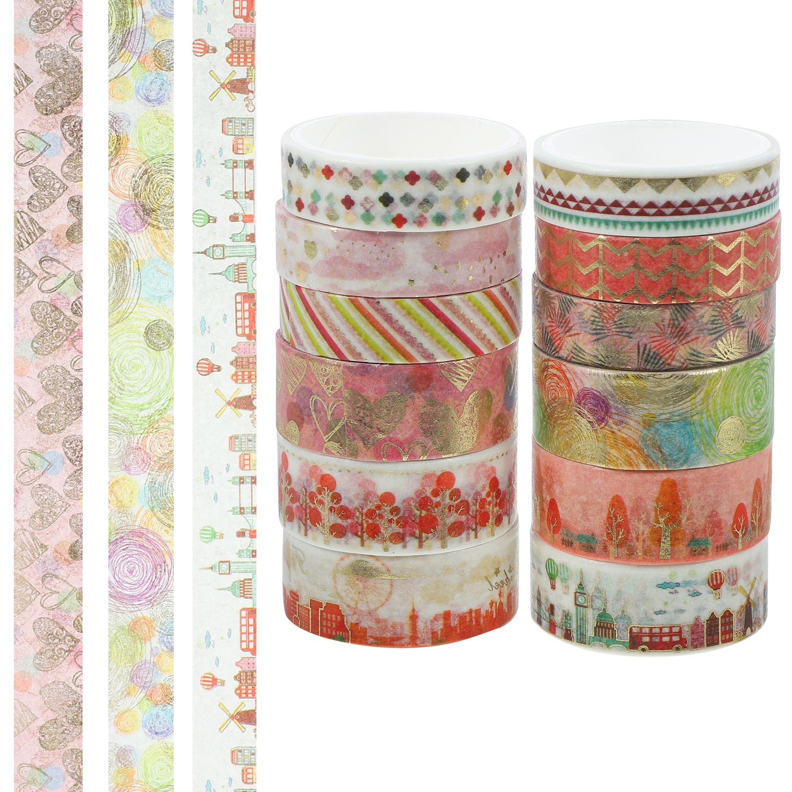 TAŚMA WASHI NAKLEJKA PAPIEROWA FOLIA ALUMINIOWA 12 ROLEK