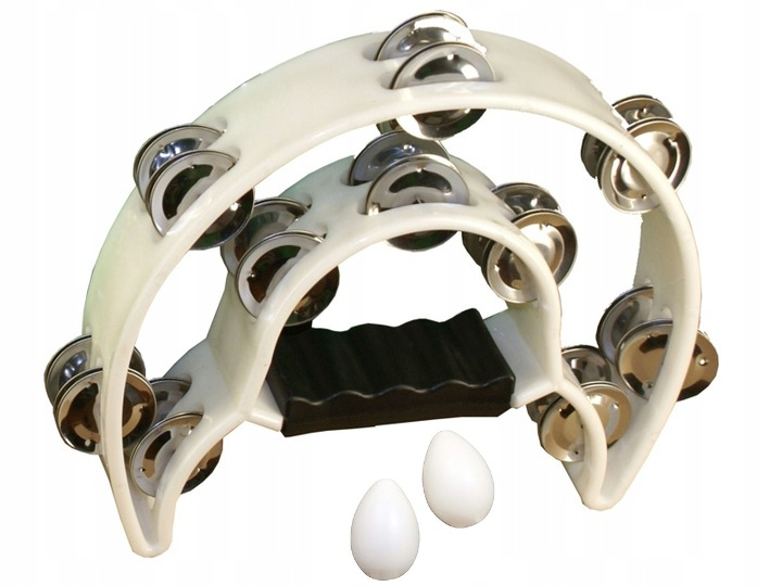 Бубен / тамбурино двойной свежи + 2 x маракас яиц / яичный шейкер / белый