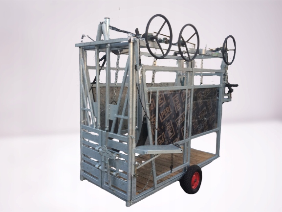 Гальванизированные урон для крупного рогатого скота, прочная конструкция. Быстрый замок головы с одним рычагом с плавной регулировкой, регулирующей размеры животного, отдельно поднимая передние копыты к закрытым таблицам с двумя ручками (для правого и левого копыта), подняв переднюю часть и заднюю часть животного, используя отдельные ручки (для простоты подъема передней части была использована выпуск коробки передач) использовалась гоночная передача. Все ручки оснащены шестернями с замками. Раздвижные двери слева и вправо. Быстрое и определенное закрытие входа в тамром, а также выходит из него. Транспортные колеса - быстрая сборка и разборка. Эстетическая и постоянная производительность. Новые товары, неиспользованные от производителя.