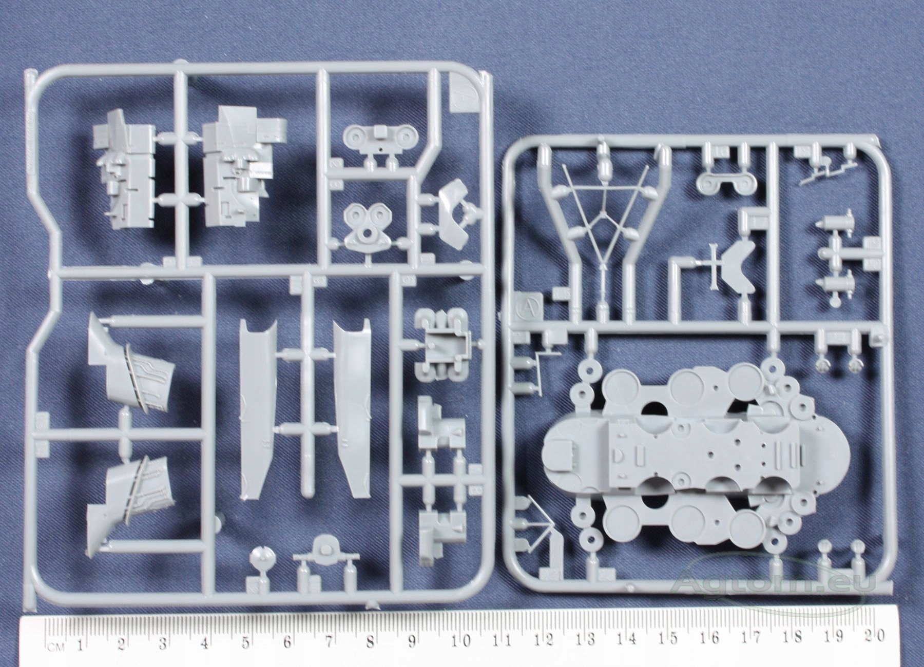 Пластиковые элементы следует вырезать из рамок, подогнать и приклеить в соответствии с прилагаемой инструкцией по сборке. После приклеивания покрасьте моделирующими красками в соответствии с предложенной схемой покраски, которая также есть в инструкции. Помните, что некоторые элементы перед приклеиванием требуют покраски. Затем нанесите входящие в комплект декали в соответствии с маркировкой или графикой.
