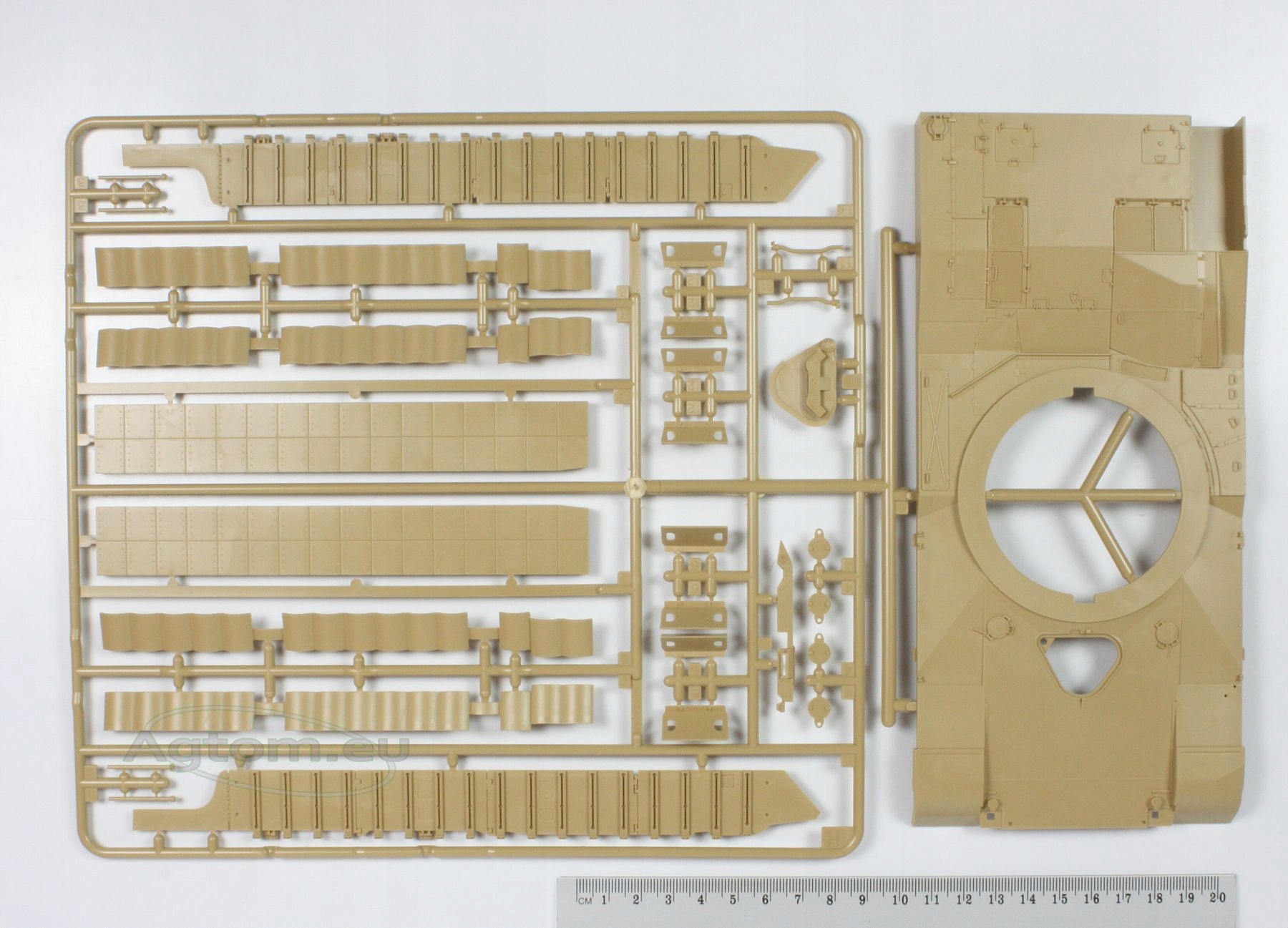 В комплект, предложенный Tamiya, входит пластиковая модель американского основного боевого танка в масштабе 1:35.