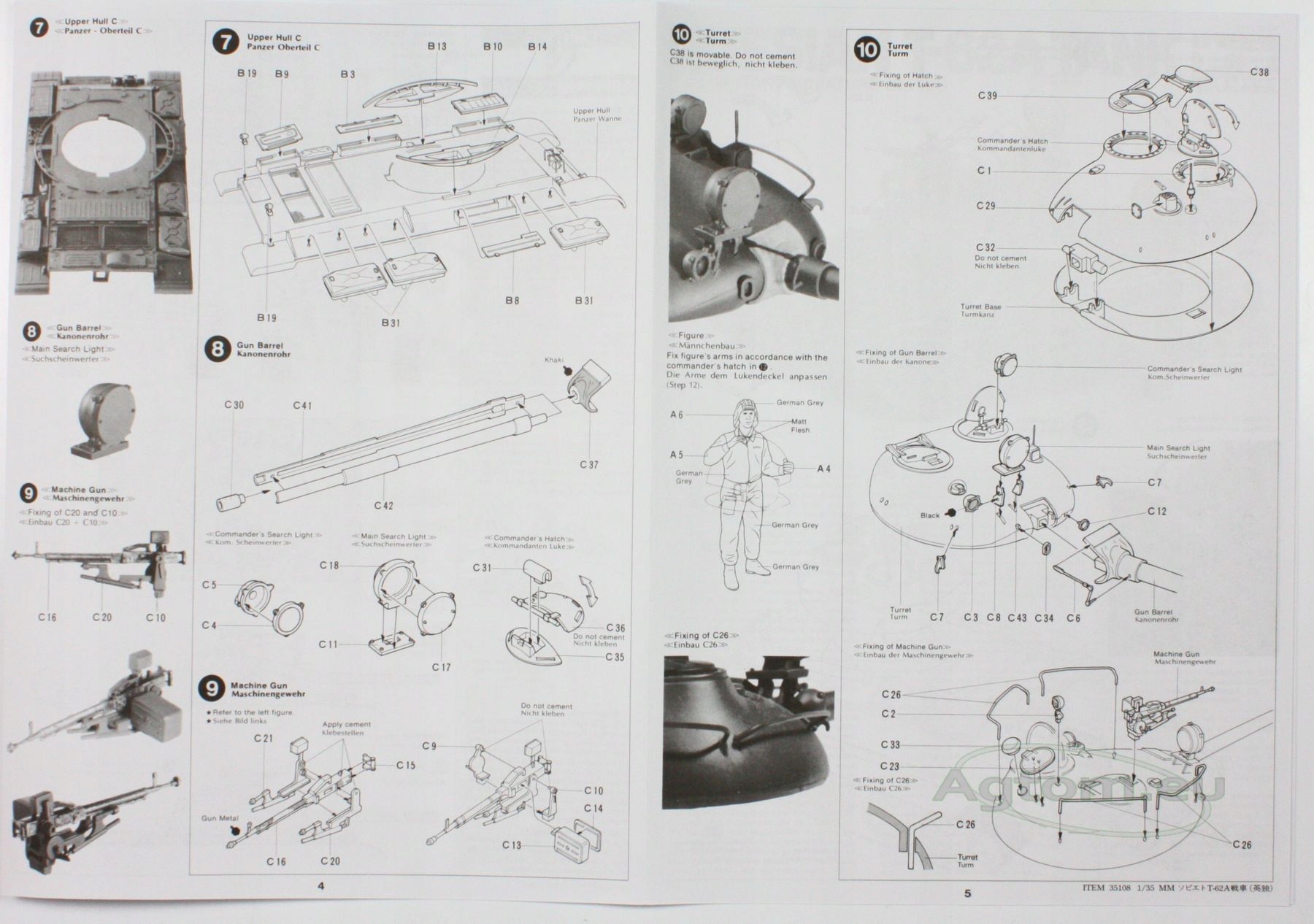 Пластиковые элементы следует вырезать из рамок, подогнать и приклеить в соответствии с прилагаемой инструкцией по сборке. После приклеивания покрасьте моделирующими красками в соответствии с предложенной схемой покраски, которая также есть в инструкции. Помните, что некоторые элементы перед приклеиванием требуют покраски. Затем нанесите входящие в комплект декали в соответствии с маркировкой или графикой.