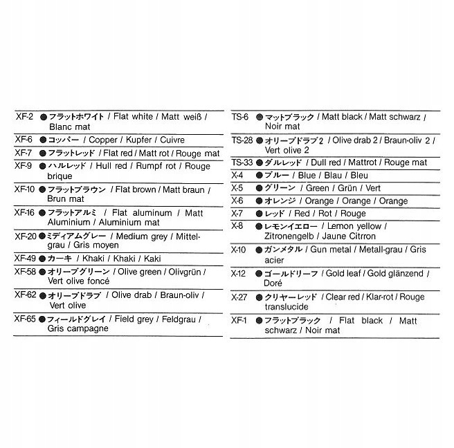 В комплект входят следующие элементы: Инструкция по сборке с предлагаемыми схемами окраски, Рамки с пластиковыми деталями, Лист с декалями, Резиновые элементы.