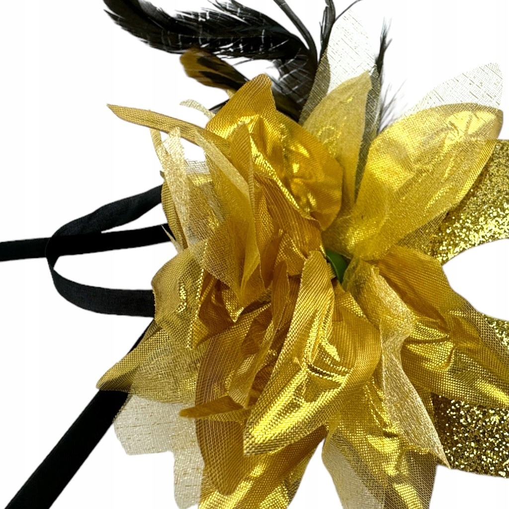Загадочная венецианская золотая маска с карнавальным цветочным блеском пера