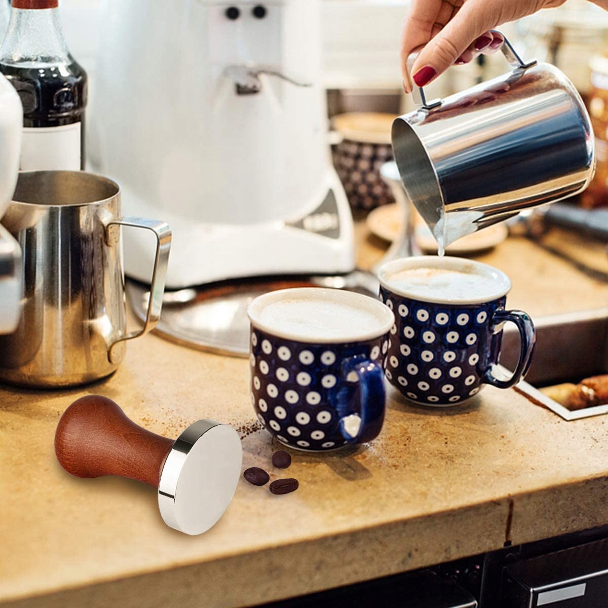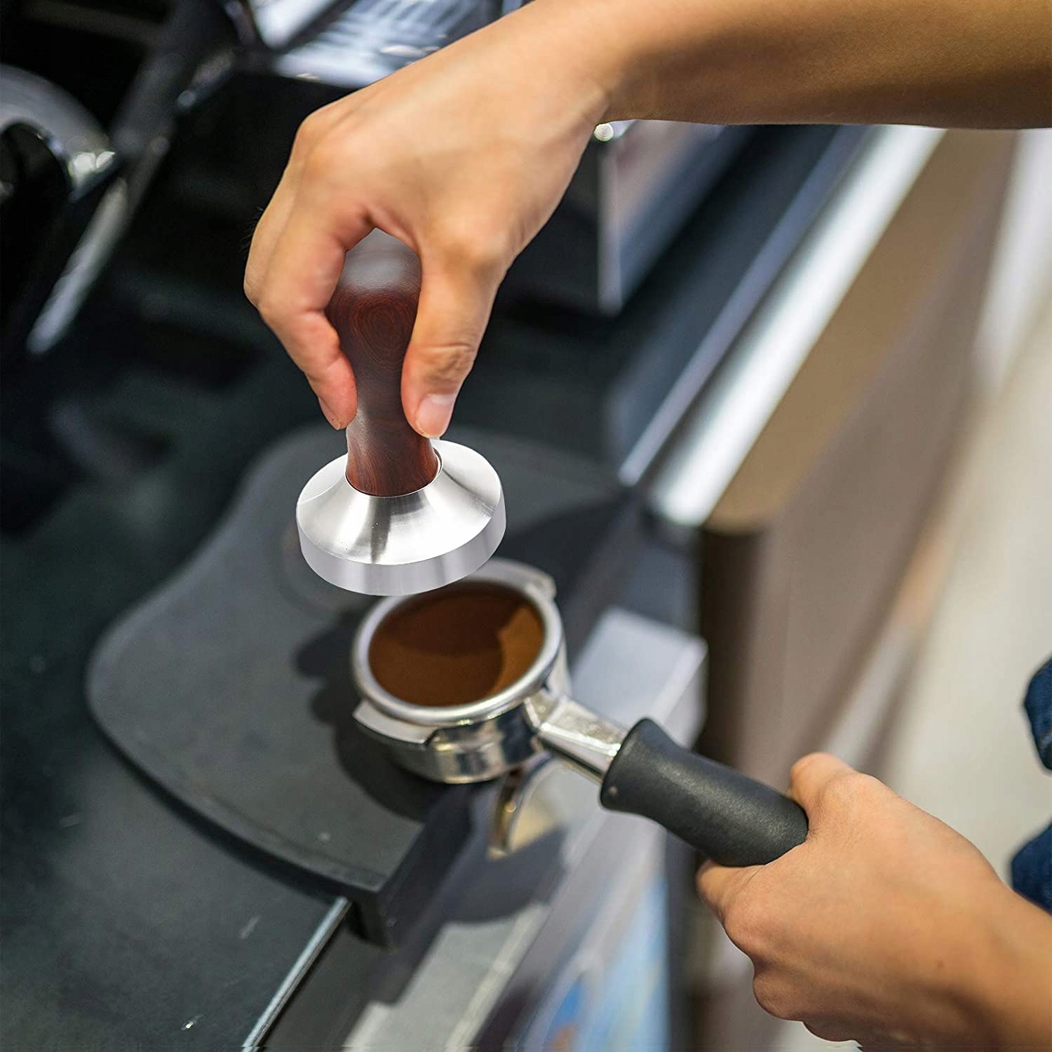 TAMPER DO KAWY 51 MM, Z MATĄ SILIKONOWĄ, PODSTAWA ZE STALI NIERDZEWNEJ