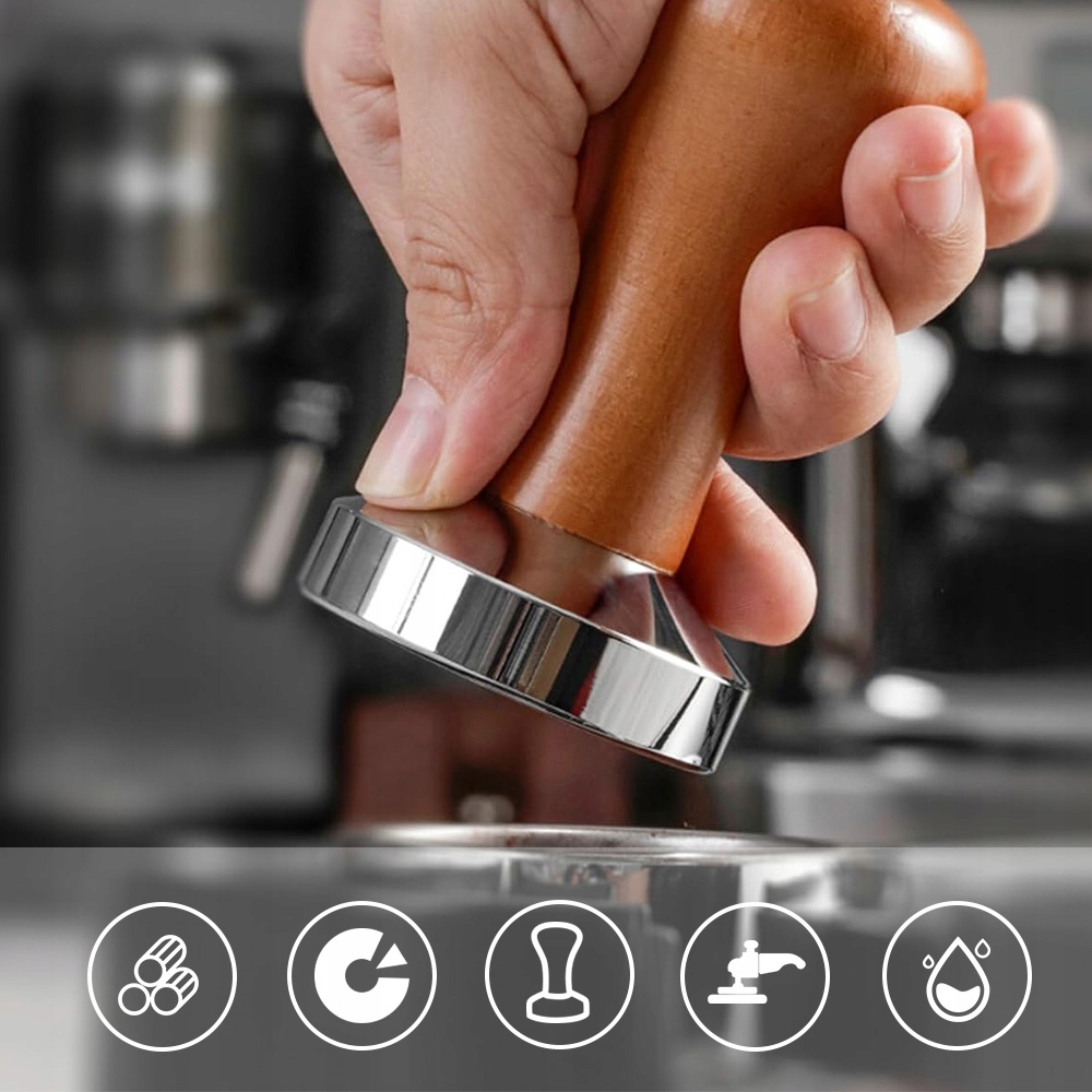 Откройте для себя мир насыщенного вкуса кофе с нашим высококачественным темпером для кофе диаметром 51 мм. Этот темпер, предназначенный для выдавливания кофейного порошка в сито, гарантирует, что каждая чашка кофе подарит вам незабываемые вкусовые ощущения. Эргономичная ручка из настоящего орехового дерева обеспечивает удобство использования, а целенаправленное давление позволяет добиться идеальных результатов бариста.