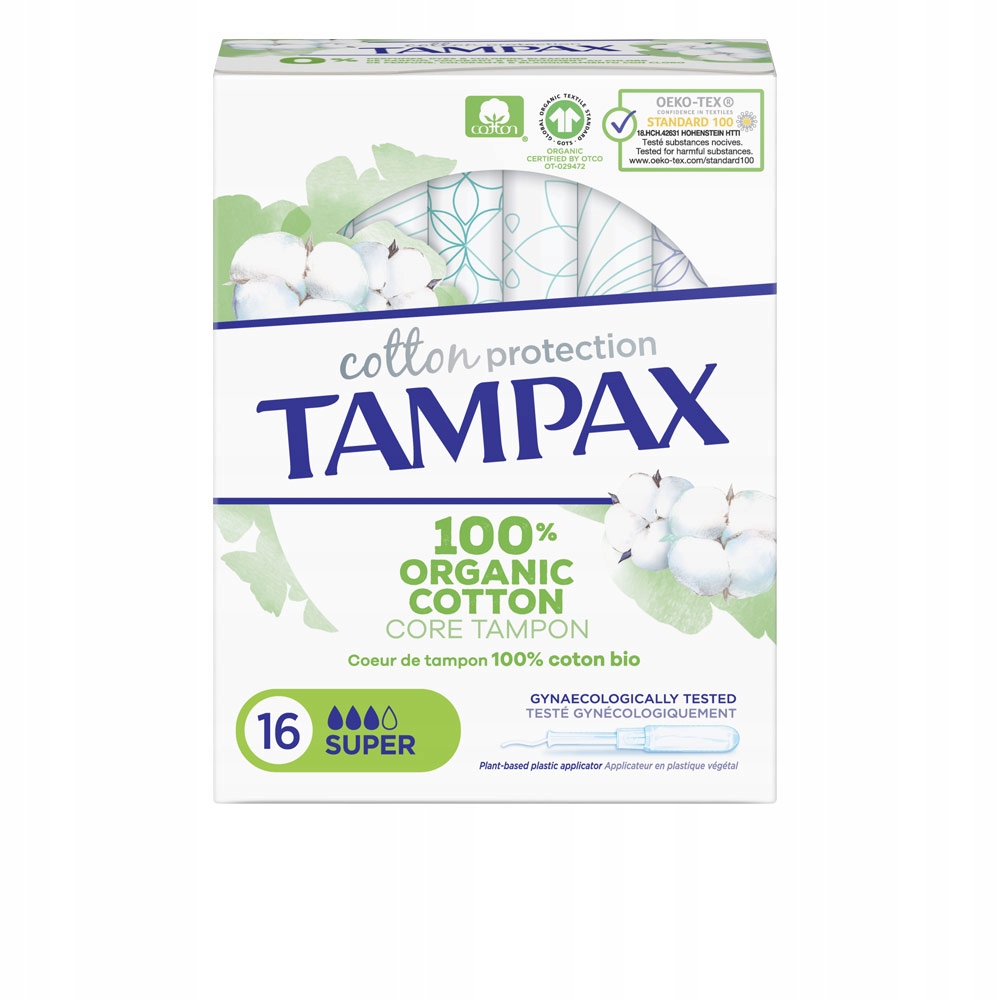 Тампоны TAMPAX ORGANIC SUPER из 16 предметов с аппликатором обеспечивают полную защиту и конфиденциальность при умеренно обильных кровотечениях во время менструального цикла.